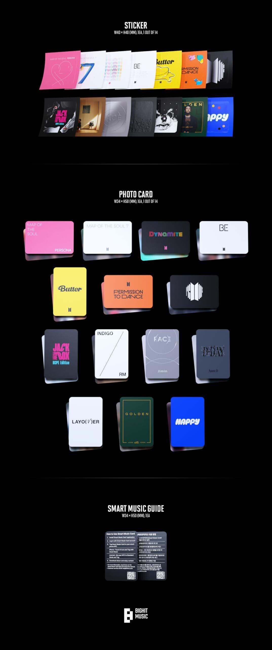 Package+1ea Random Case+1ea Random NFCcard+1ea Sticker+1p Photo Card+1ea Guide