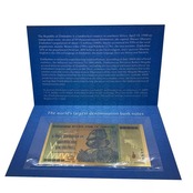世界的に有名なジンバブエ100兆ドル紙幣(レプリカ)をゴールド仕様で忠実に再現。