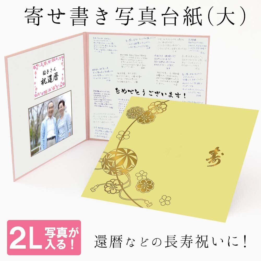 【特価商品】還暦 古希 喜寿 傘寿 米寿 卒寿 白寿 紀寿 百寿 寄せ書き写真台紙 大 長寿祝いのお祝い品 感謝を込めて贈る記念の写真台紙 写真を貼って作れる台紙 中枠付き アルバム台紙 日本製 (寄せ書き 黄色)
