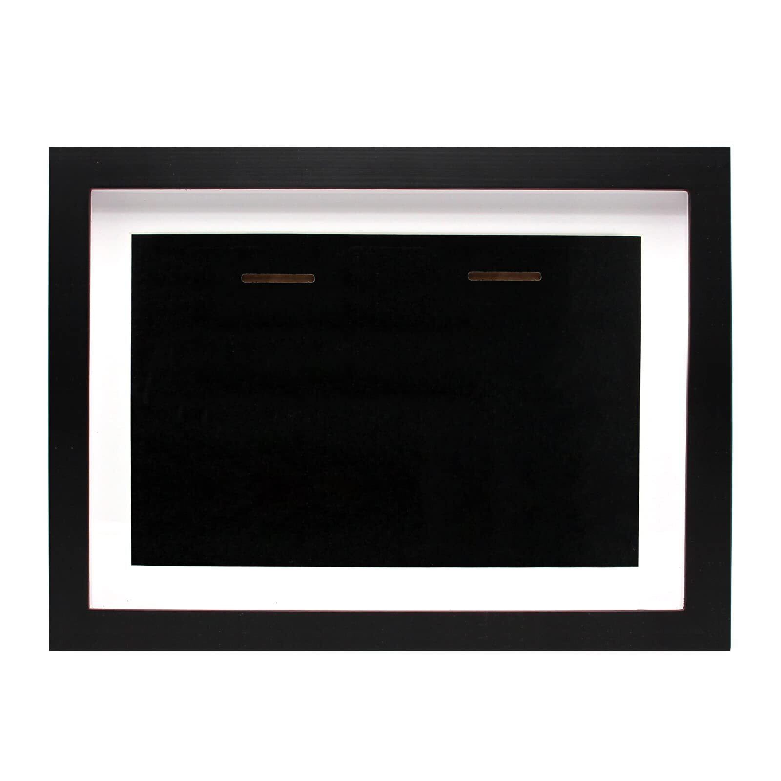 【フレームサイズ】内部寸法は29.7 x 21 cm、外部寸法は32.5 x 23.6 x 3 cm。黒いマットとガラスの間の空間は1.5 cmで、ほとんどのサイズのメダルを収容することができますが、試合によっては大きなメダルは除外されています。