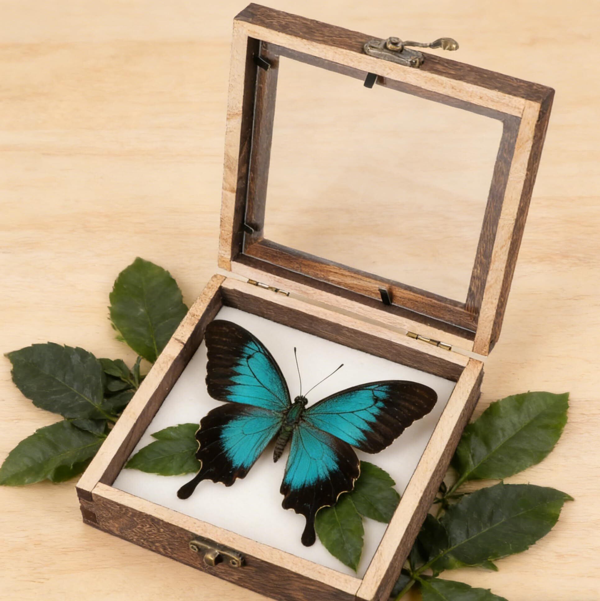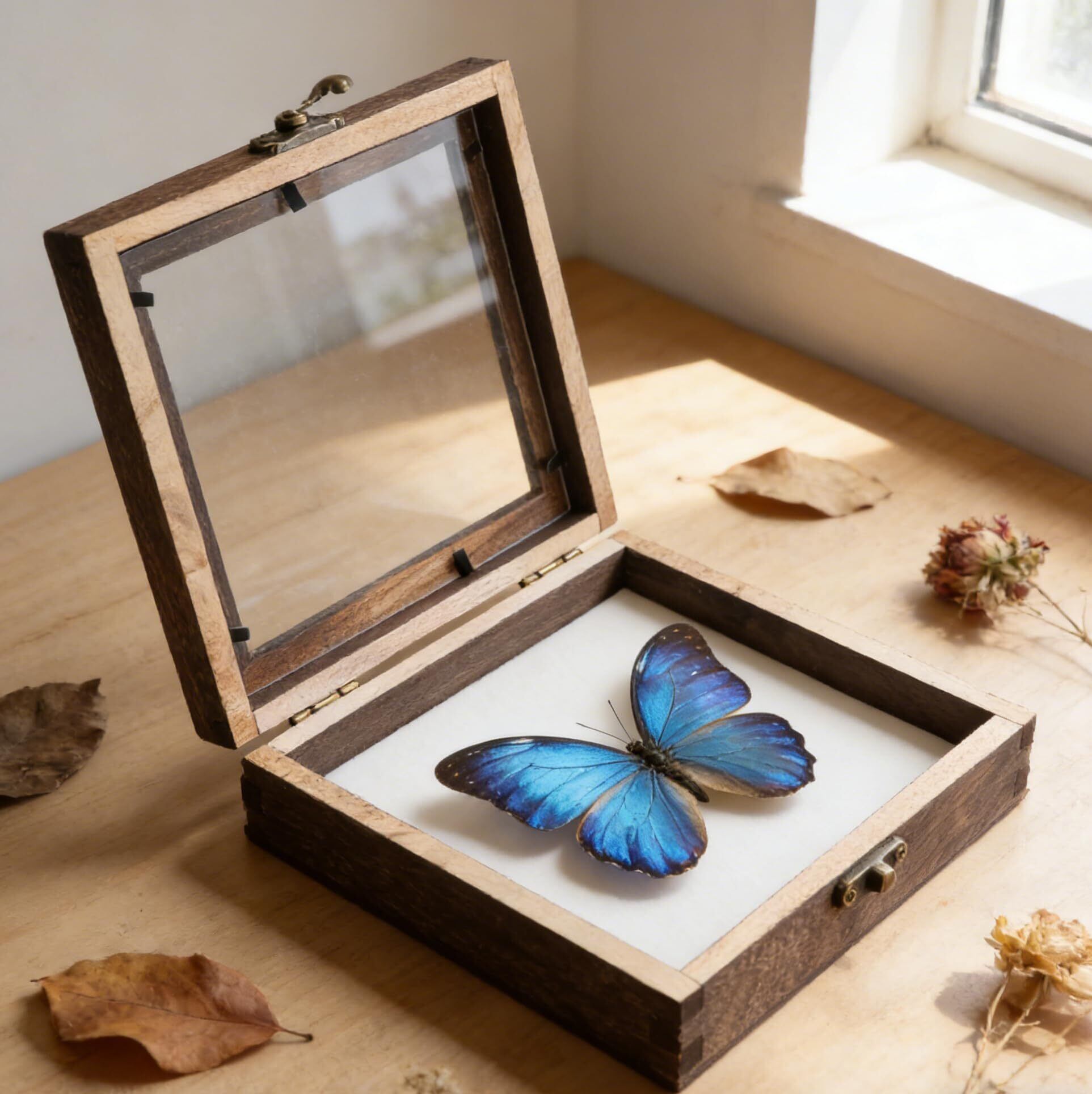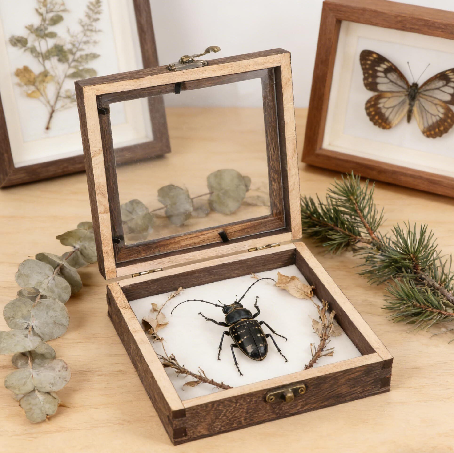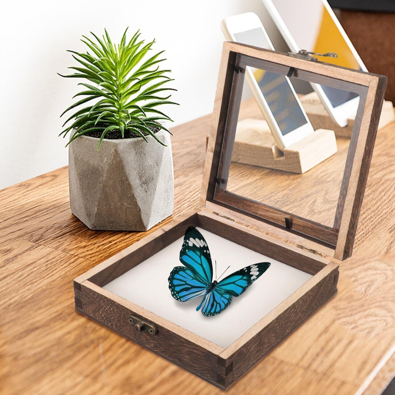 クリアな蓋で標本を見やすく保護:透明な蓋が内部の昆虫標本や小物を一目で確認できるようにし、ホコリや傷からしっかり守ります。標本展示に最適な設計です。