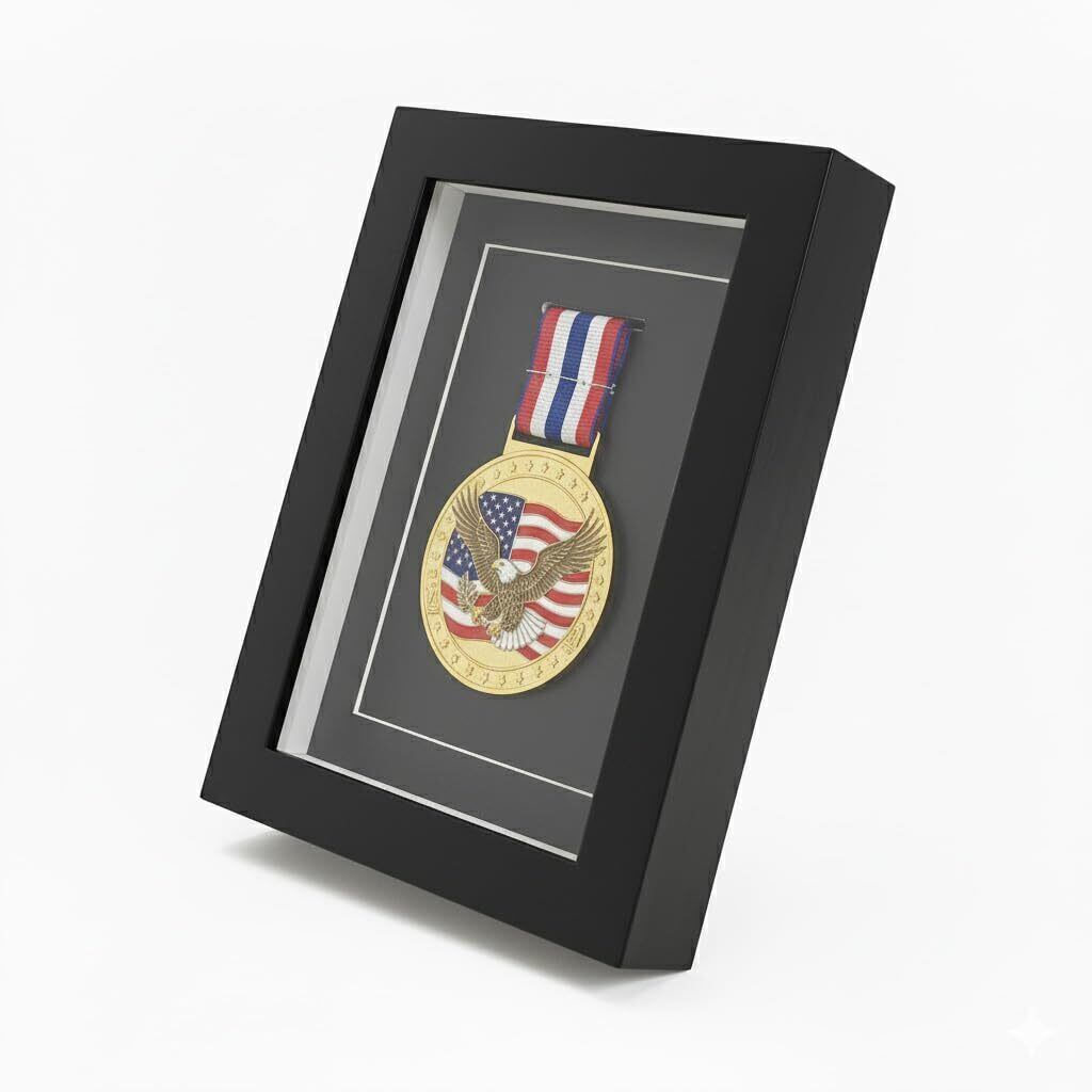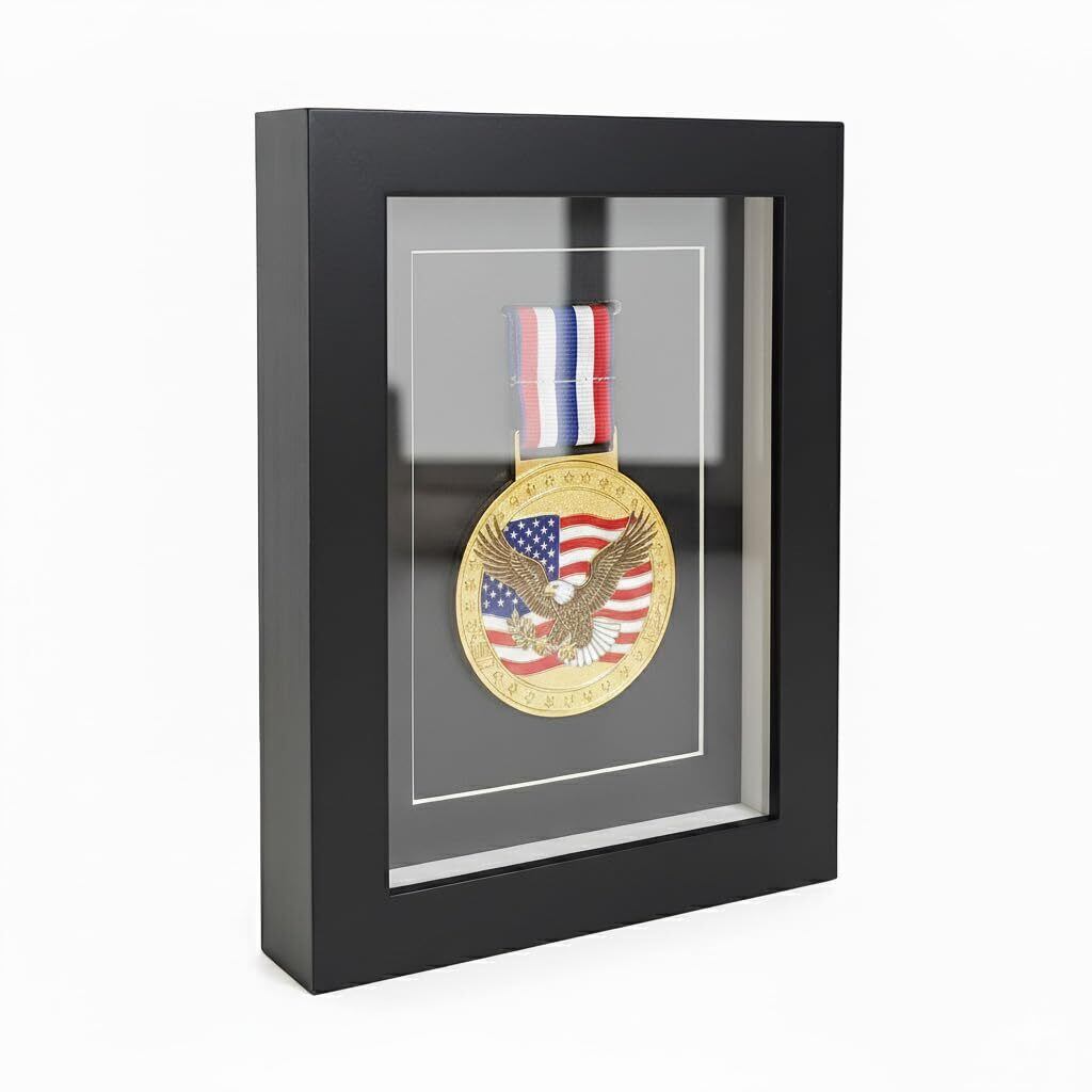 完璧なメダルフィット – 厚さ0.65インチまでのメダルを1枚しっかりと保持するように設計されているため、軍事メダル、スポーツメダル、学術賞の展示に最適です。