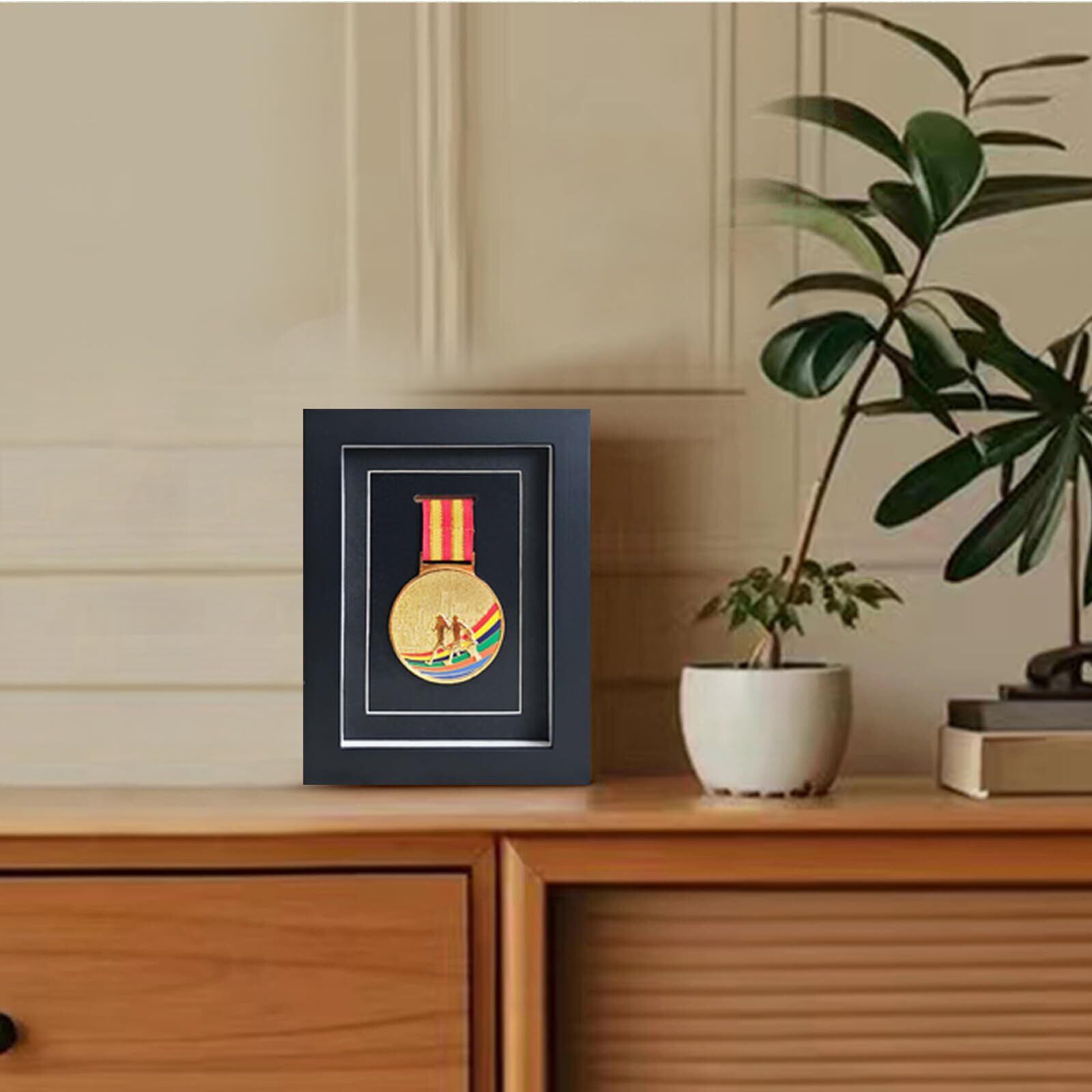 メダルディスプレイケース - 6x8インチ ブラック木製メダルシャドーボックス ガラス前面 ミリタリーメダルディスプレイボックス アスリート ランナー 学生 コレクター向け – 壁掛け&デスクトップスタンド
