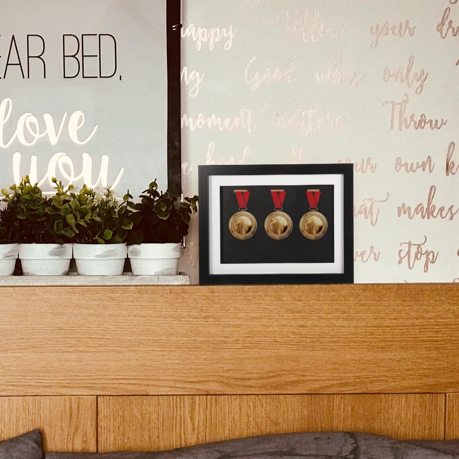 【在庫処分】メダルディスプレイボックス 壁掛けa4サイズ 13.00×9.65×1.18インチ ブラック シャドーケース フォトフレーム付き マラソンメダル収納用 保護パッド付き