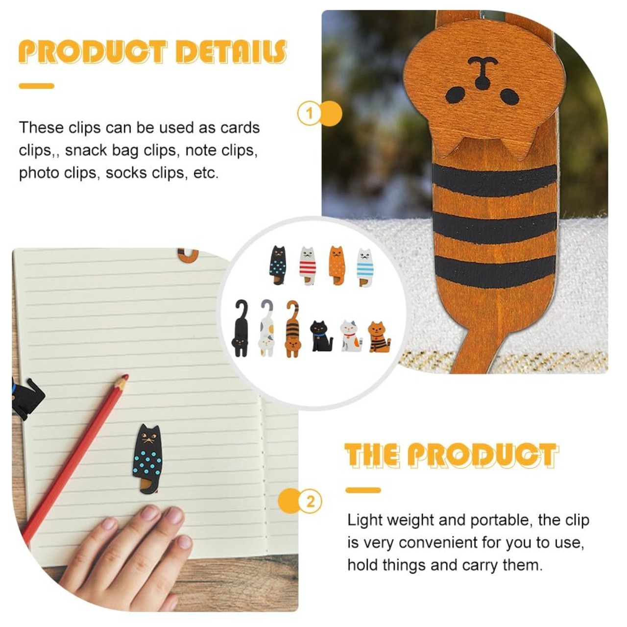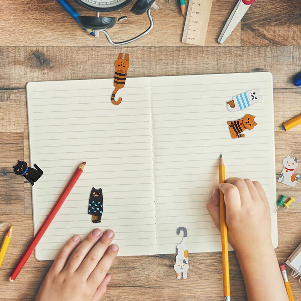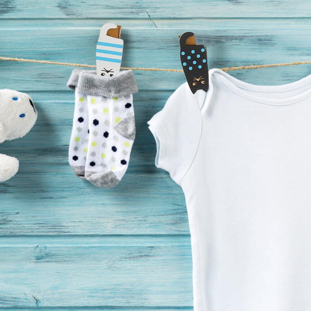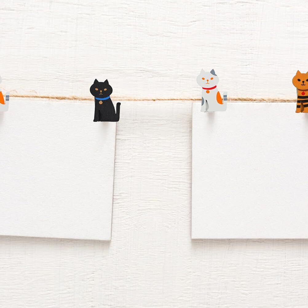多用途な猫形クリップ:10ピースの猫型木製クリップは、写真クリップ、メモクリップ、スナックバッグクリップ、ソックスクリップとして使え、日常の整理やディスプレイに便利です。