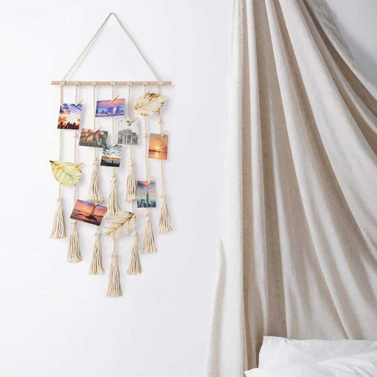 【素材】: 高品質の木材と綿ロープ素材で作られており、丈夫で耐久性があり、タッセルが自然に垂れ下がり、写真の美しさを十分に表現できます。
