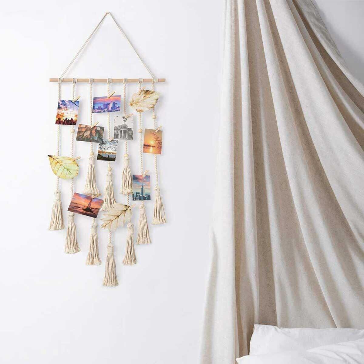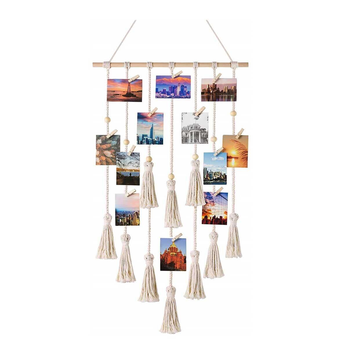 【2022最新】写真ガーランド 壁掛け タッセル フォトガーランド 25個木製クリップ付 おしゃれ 吊り下げ 写真立て ポストカード ディスプレイ DIY ボヘミアン 部屋飾り 寮 寝室 ホーム装飾品