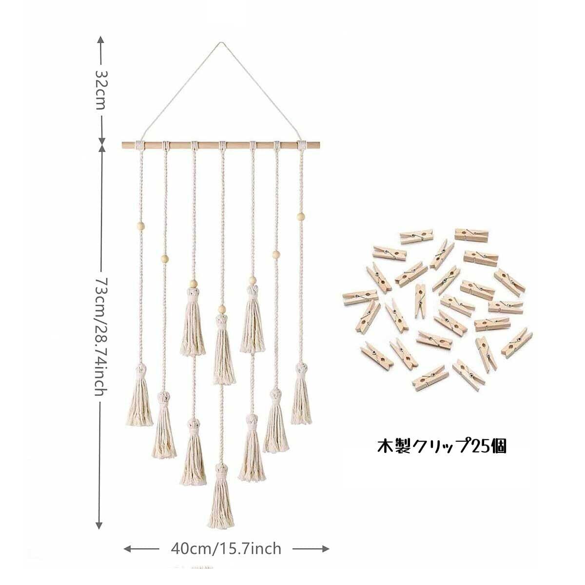 写真ガーランド 壁掛け タッセル フォトガーランド 25個木製クリップ付 おしゃれ 吊り下げ 写真立て ポストカード ディスプレイ DIY ボヘミアン 部屋飾り 寮 寝室 ホーム装飾品