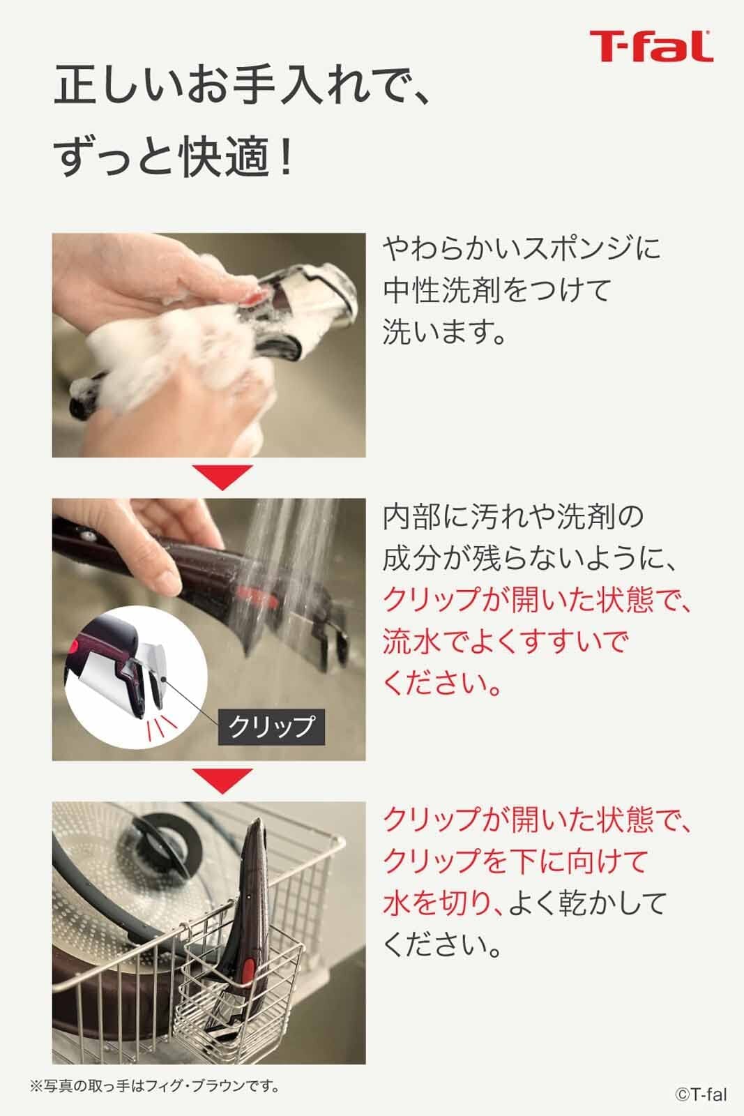 【ティファール純正品以外の使用に対するご注意】取っ手などの付属品も含めティファール純正品以外を使用した場合には、破損や事故などを生じる恐れがあることに加え、弊社は責任を負いかねますのでご了承ください。安全にお使いいただくためにも弊社純正品をお使いください