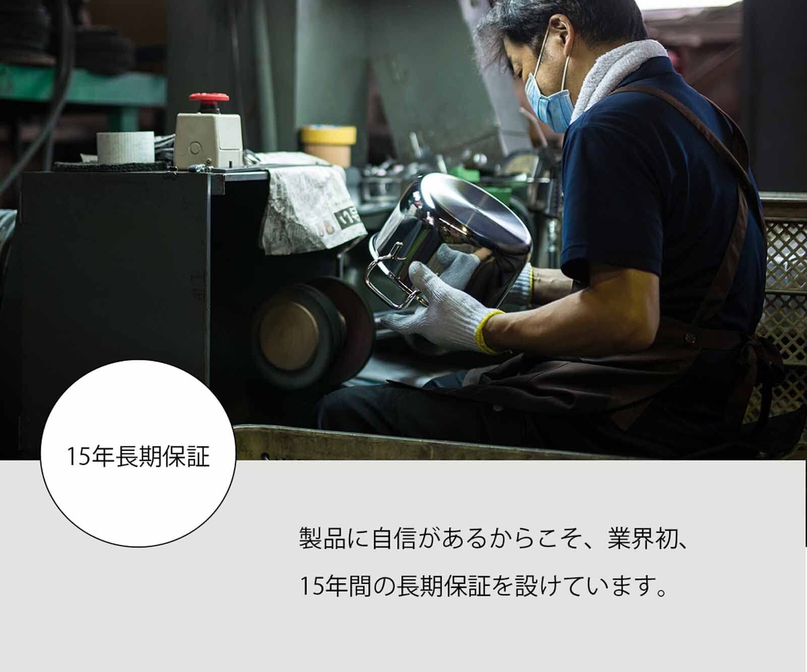 1960年の創立以来、確かな品質の金属ハウスウエアを作り続けてきた宮崎製作所が、1996年に立ち上げたのが「ジオ・プロダクト」シリーズ。「食」の達人としてテレビなどでもお馴染みの服部幸應氏をスーパーバイザーに迎えて開発された一連の製品は、機能性はもちろん、手入れの簡単さと耐久性を重視したプロ仕様のアイテムとなっている。15年という保証期間の長さからも、出来映えへの自信が感じられる。