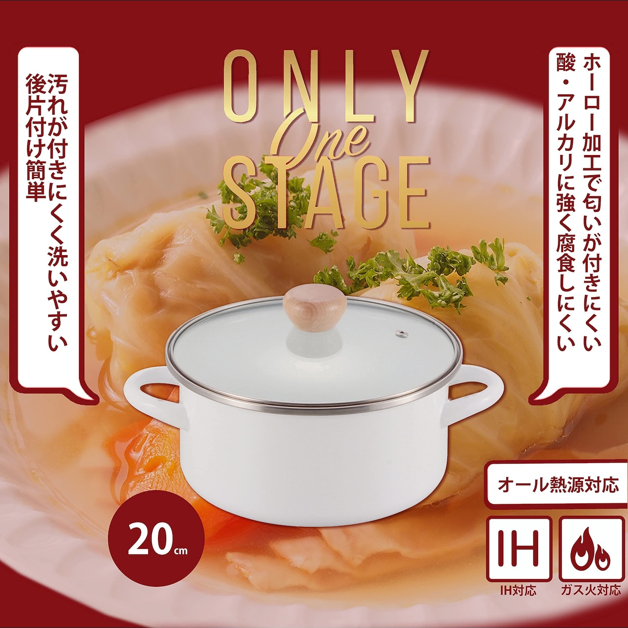 パール金属 両手鍋 20cm ホーロー ほうろう ガラス蓋付 IH対応 オンリーワン・ステージ HB-6161