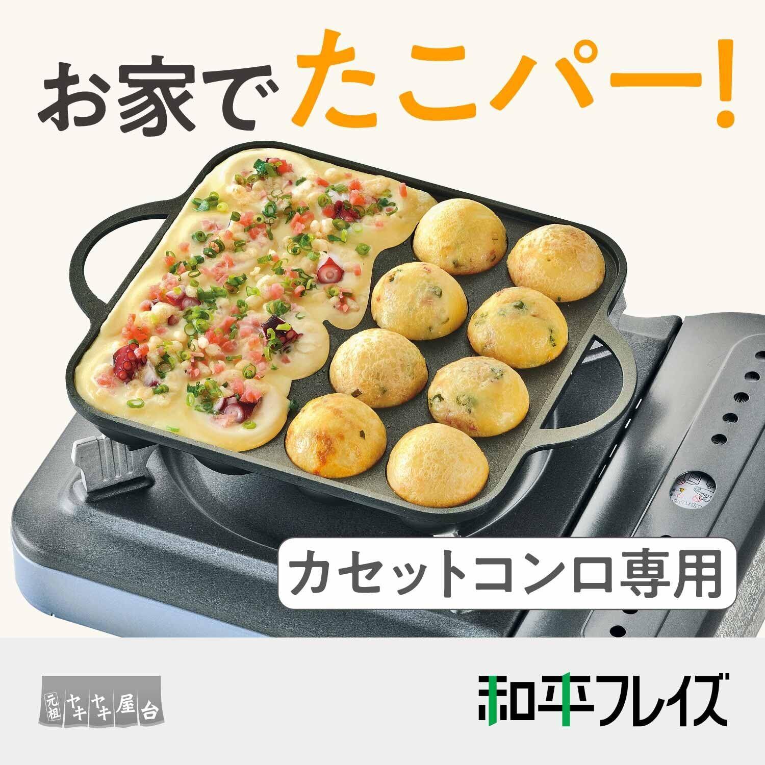 お家でアツアツたこ焼きを楽しもう!カセットコンロに置いて焼く簡単スタイル。ふっ素樹脂加工でお手入れ簡単です。