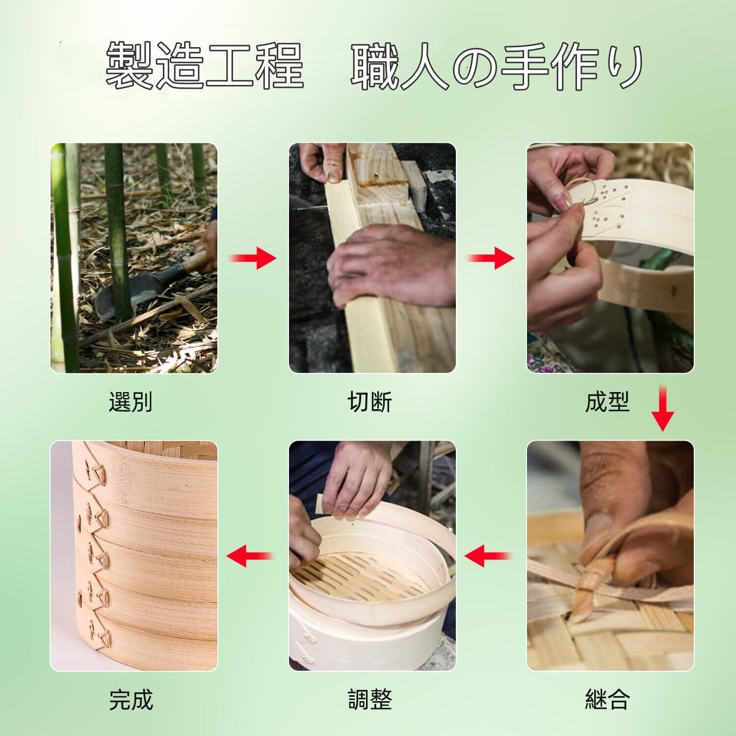 【天然竹製,接着のりなど使用していない】ほかの商品接着のりを使うと外観がきれいですが、体の健康に影響があります。化学物質を含まないため、安心して料理を作ることができます。