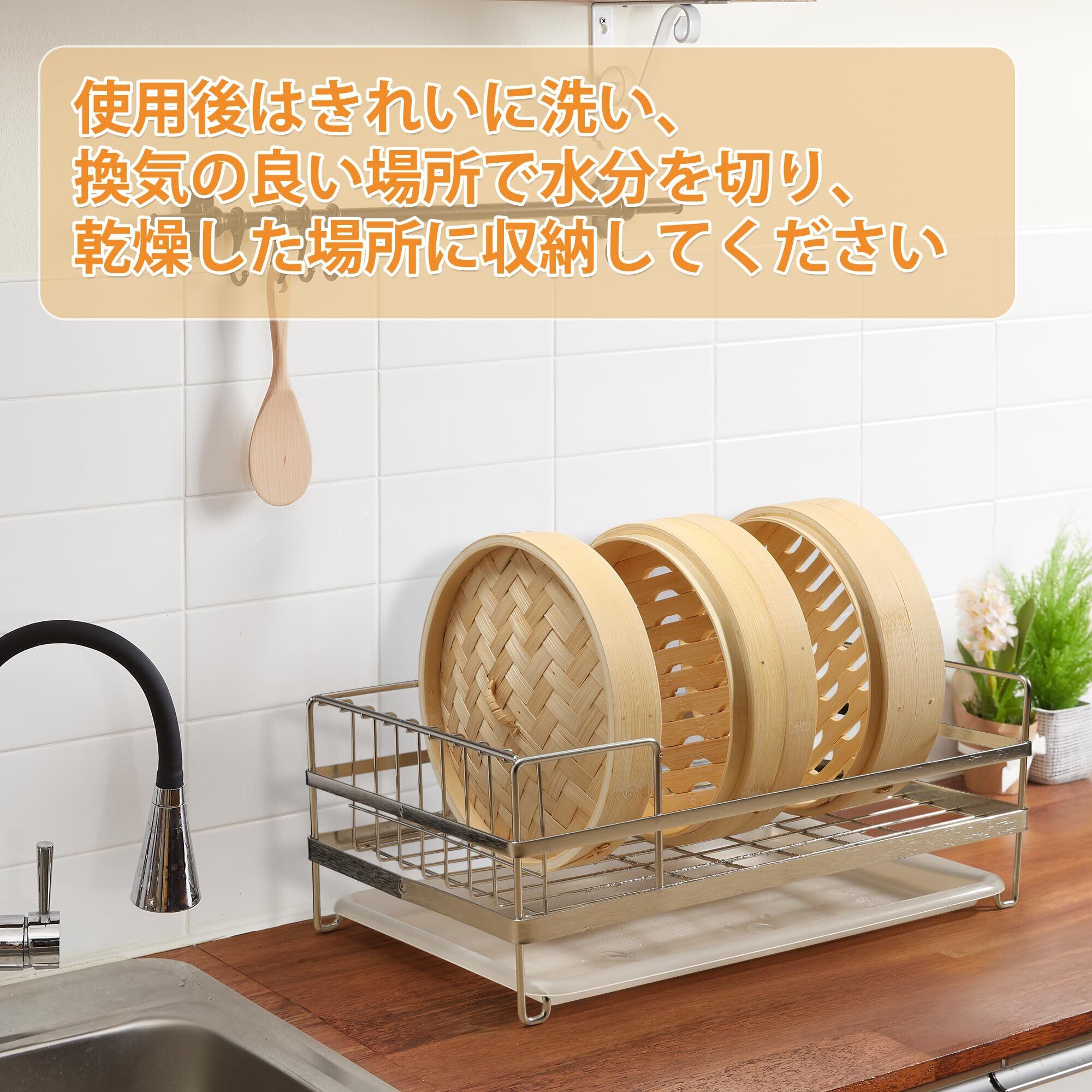 せいろ蒸し器初めて使用する前に、清水できれいに洗い、空焚きを 10 分間行い、再度きれいに洗ってから使用してください。使用後は、まずきれいに洗い、別々に換気の良い場所で乾かし、乾燥した場所に収納してください。