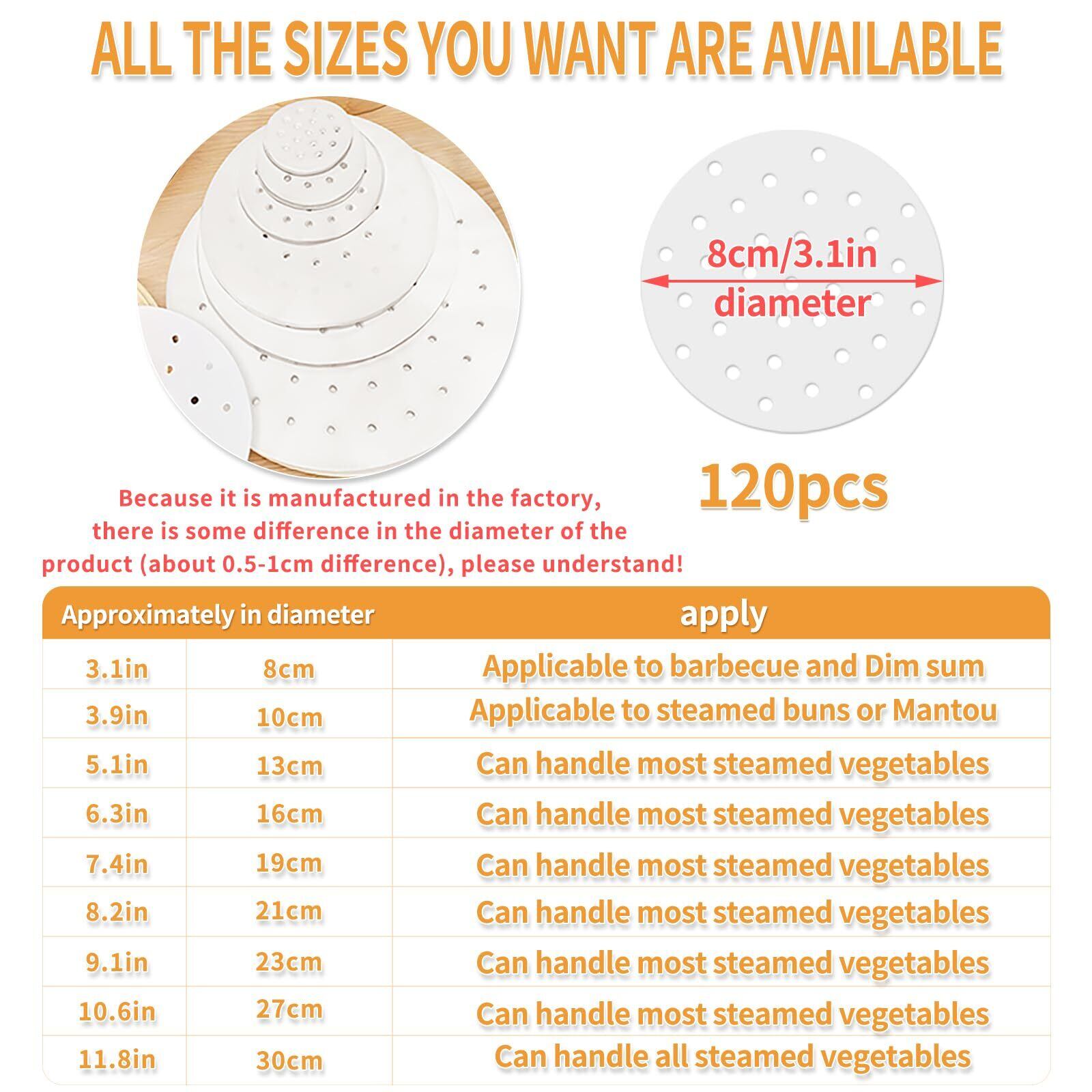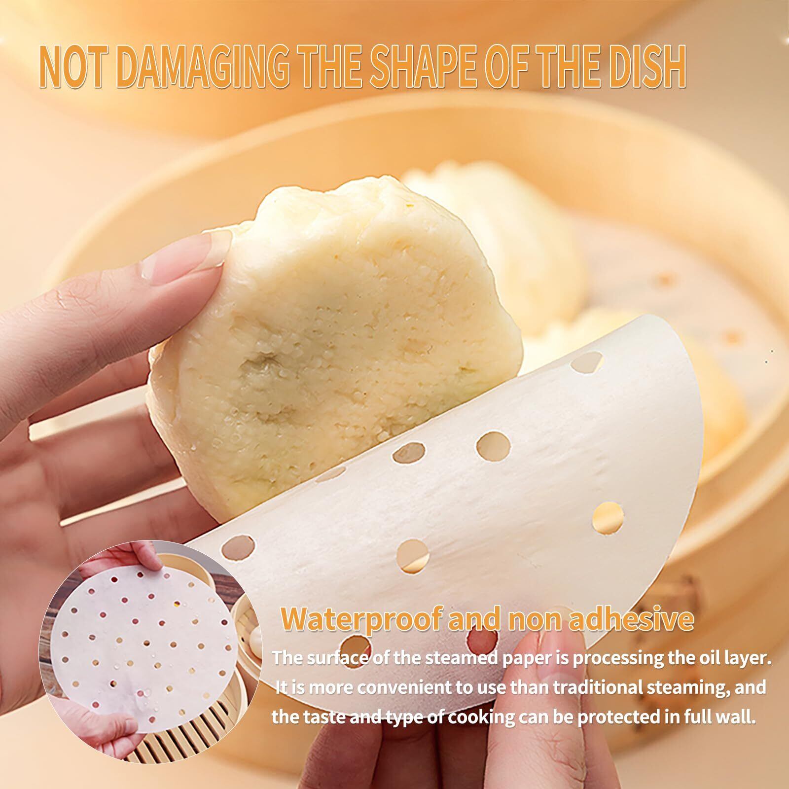 【穴あき型蒸しペーパー】蒸気を通すための小さな穴が均一に多く分布しており、蒸し料理を作る際に食べ物を均一に受熱可能、蒸し器の効率を高めることができます。