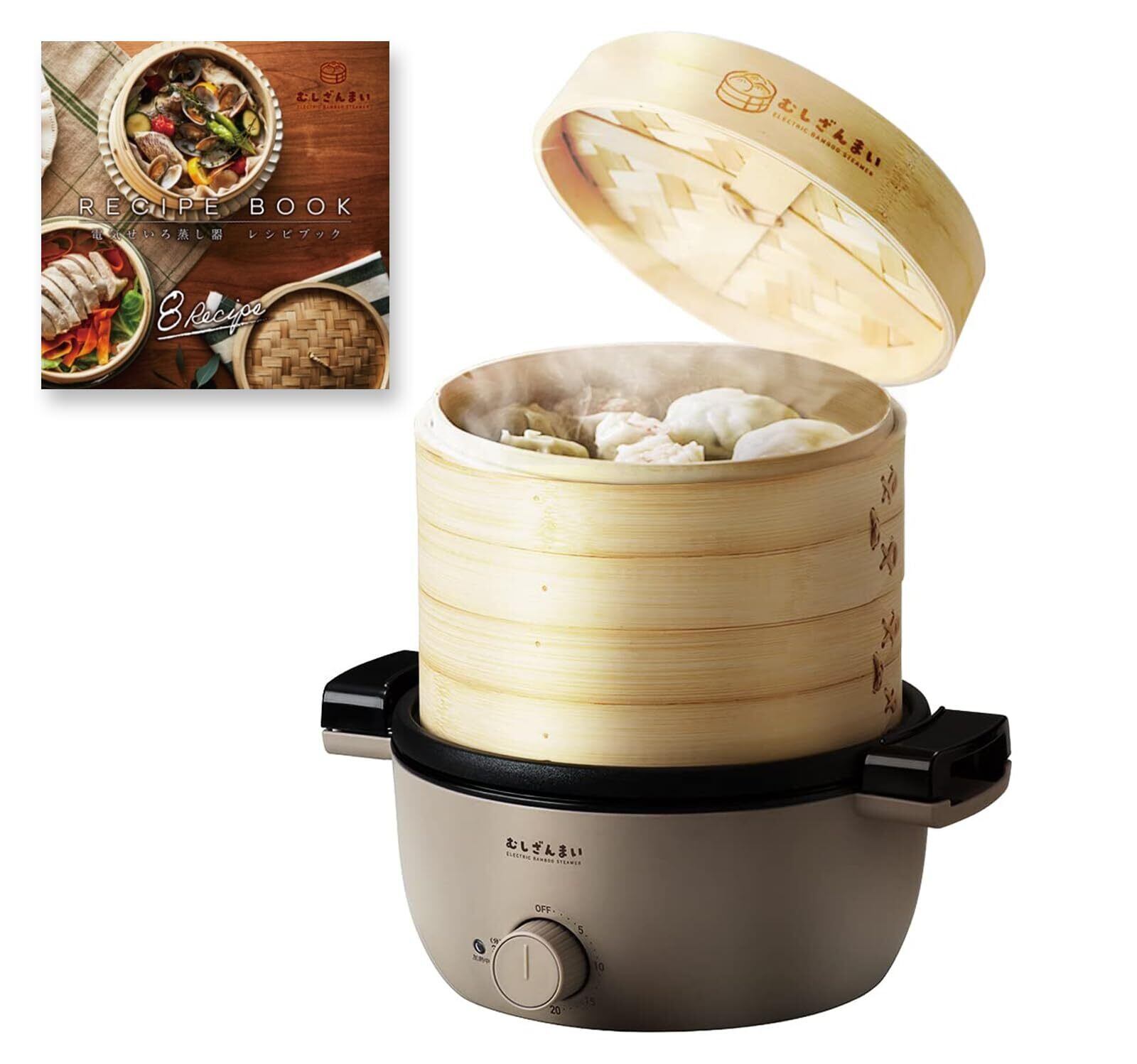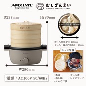 【在庫処分】アピックス むしざんまい 電気せいろ蒸し器 8種の料理レシピブック付き 竹製せいろ二段 最長30分タイマー機能 フードスチーマー スチームクッカー 蒸し器 点心 茶碗蒸し 蒸し料理
