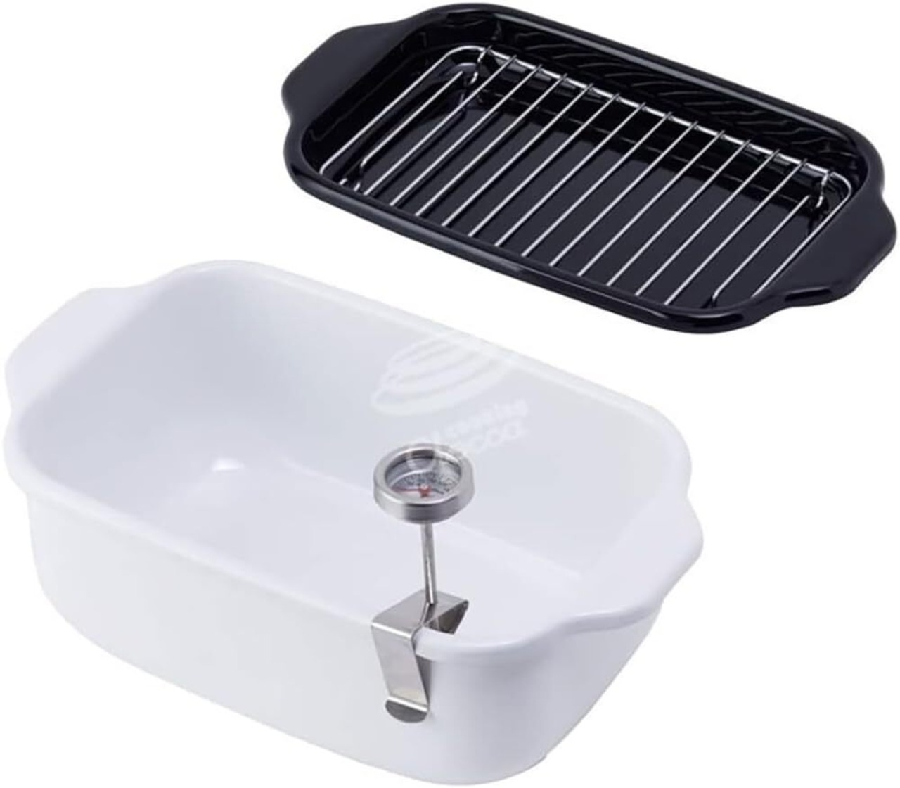 【特価商品】富士ホーロー 天ぷら鍋 角型 琺瑯製 丸洗いできる温度計 スノコ網 バット付き ホワイト