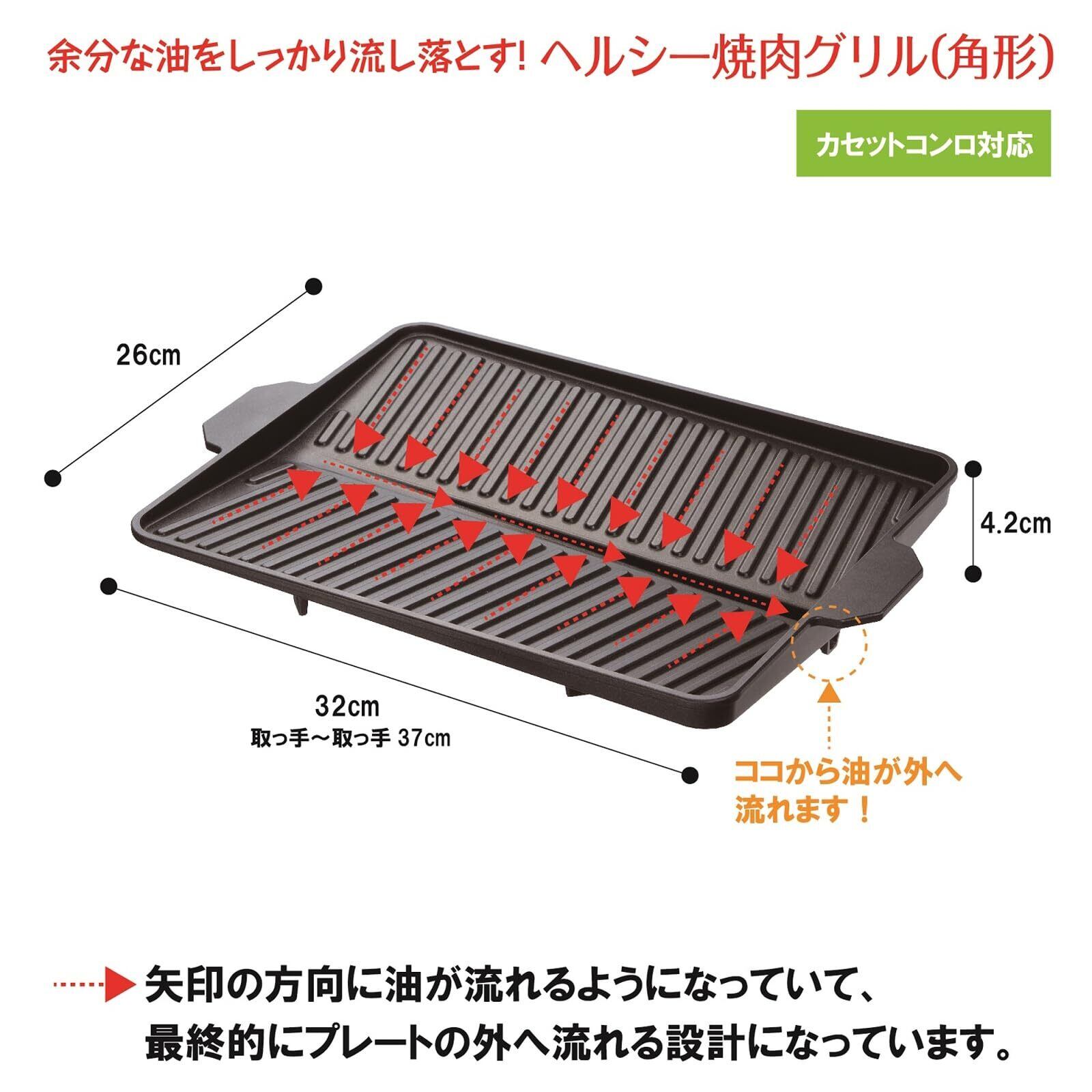 イシガキ 焼肉プレート ブラック 幅37×奥行26×高さ4.2cm 角型 おいしさ特選便 ヘルシー 焼肉グリル カセットコンロ用 余分な油 落とせる 溝付き 省スペース設計 焼肉 サムギョプサル 韓国料理 3562