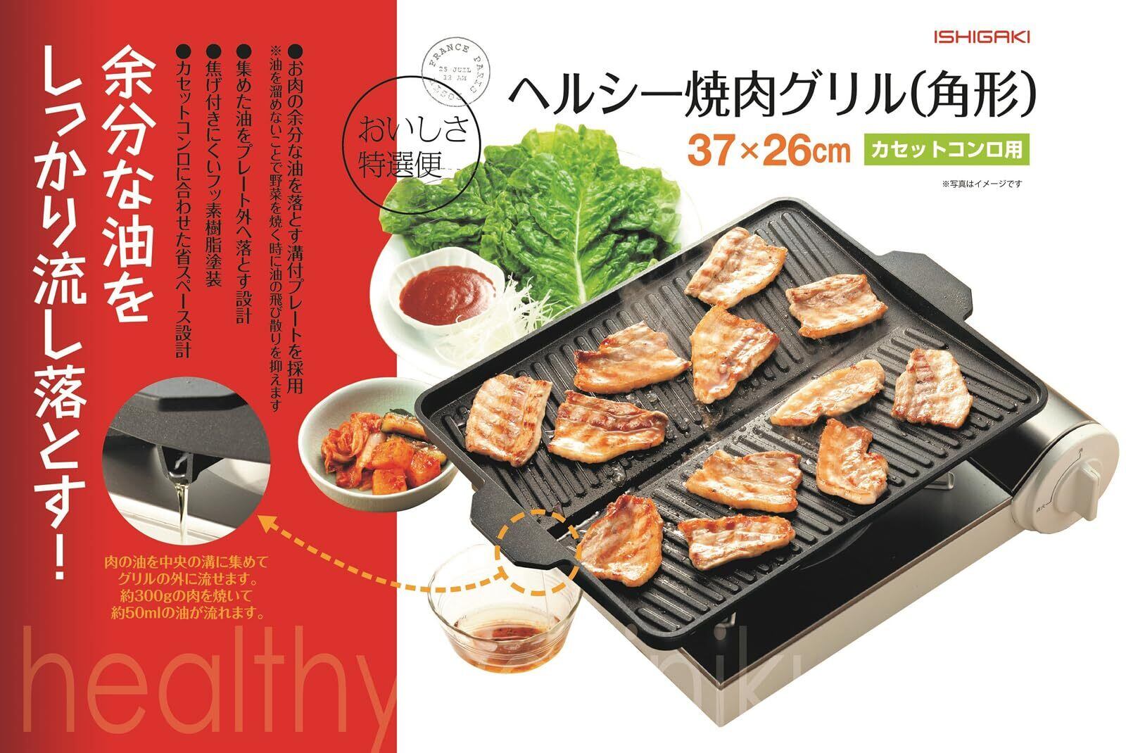 【2022最新】イシガキ 焼肉プレート ブラック 幅37×奥行26×高さ4.2cm 角型 おいしさ特選便 ヘルシー 焼肉グリル カセットコンロ用 余分な油 落とせる 溝付き 省スペース設計 焼肉 サムギョプサル 韓国料理 3562