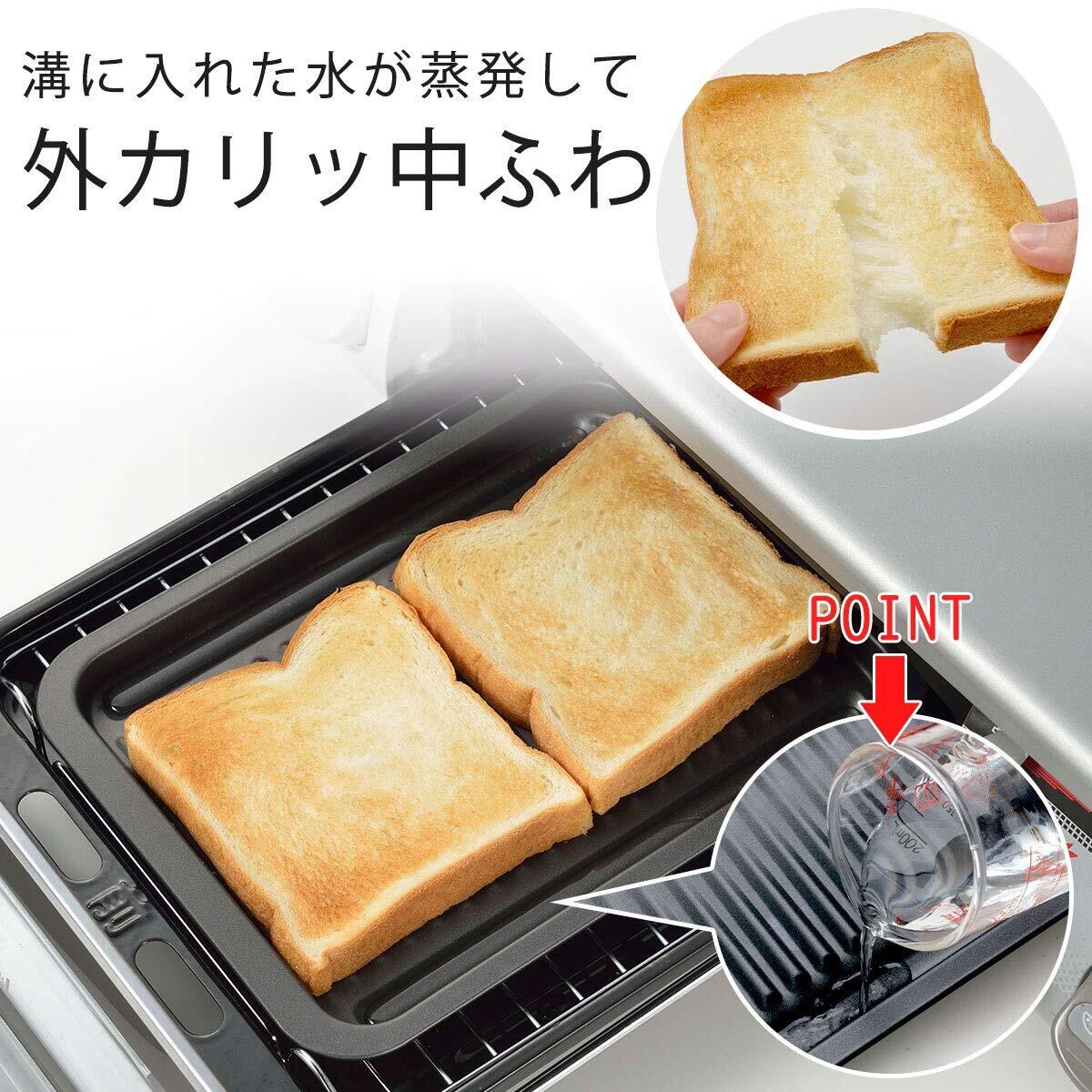 理由は、左右の溝ポケット。焼く前に溝に水を入れて両面焼きグリルにセット、水が蒸発することで庫内は蒸気が広がり、パンに含まれている水分を外に出しにくくする。外は熱源でカリッとこんがり焼ける