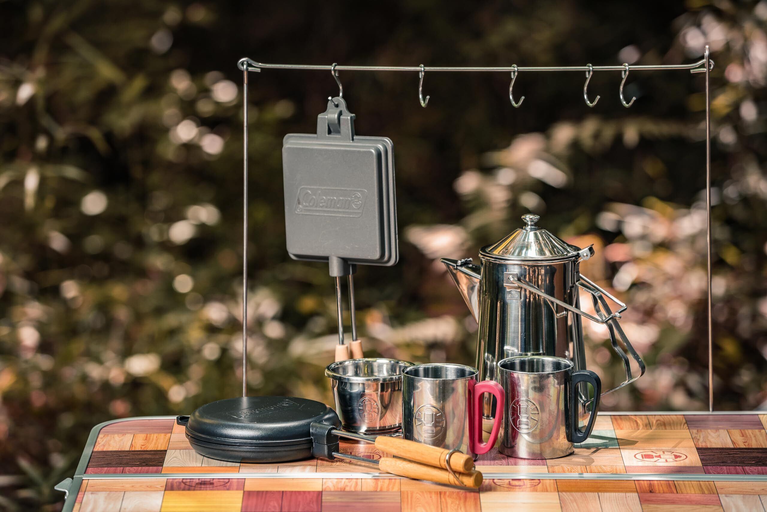 ツーバーナーで手軽にホットサンドが作れる。シンプルな構造で手軽に楽しむことが出来る。内部はノンスティック加工で食材がこびり付かない。ランタンマークがサンドイッチに刻印できる。取り外し可能なハンドルでコンパクト収納。