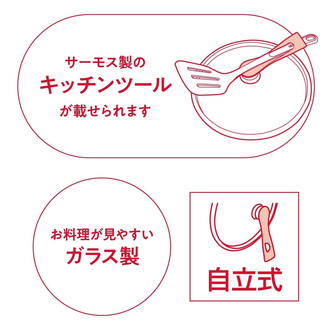 ●サーモス製フライパン、炒め鍋、マルチパンに対応のガラスフタ
