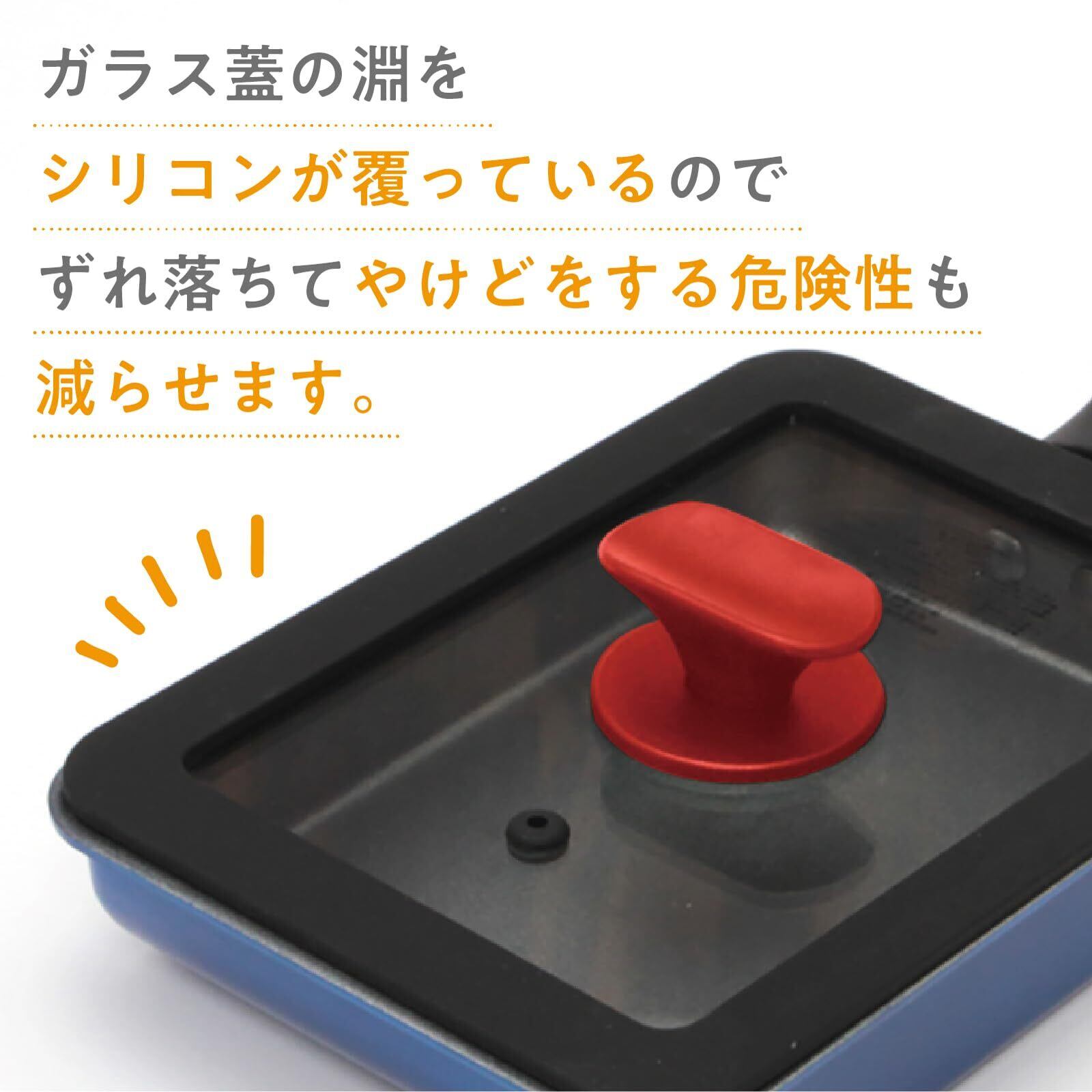 谷口金属 シリコンでずれ落ちにくい 玉子焼き 卵焼き フライパン 蓋 フライパンカバー 13×18cm 対応 強化ガラス 中身が見える ガラス蓋 油汚れが付きにくい レッド
