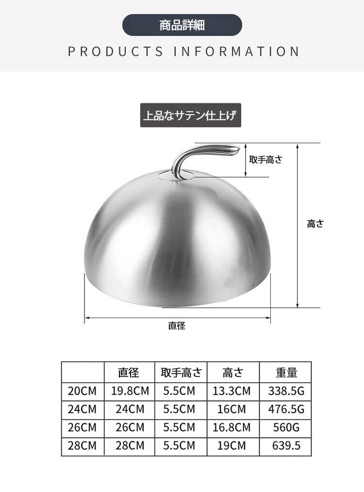 Desirable ステーキ お好み焼き カバー ステンレス ドーム型 丸型 鉄板焼きドーム ディッシュ蓋 食卓カバーにも (20cm)