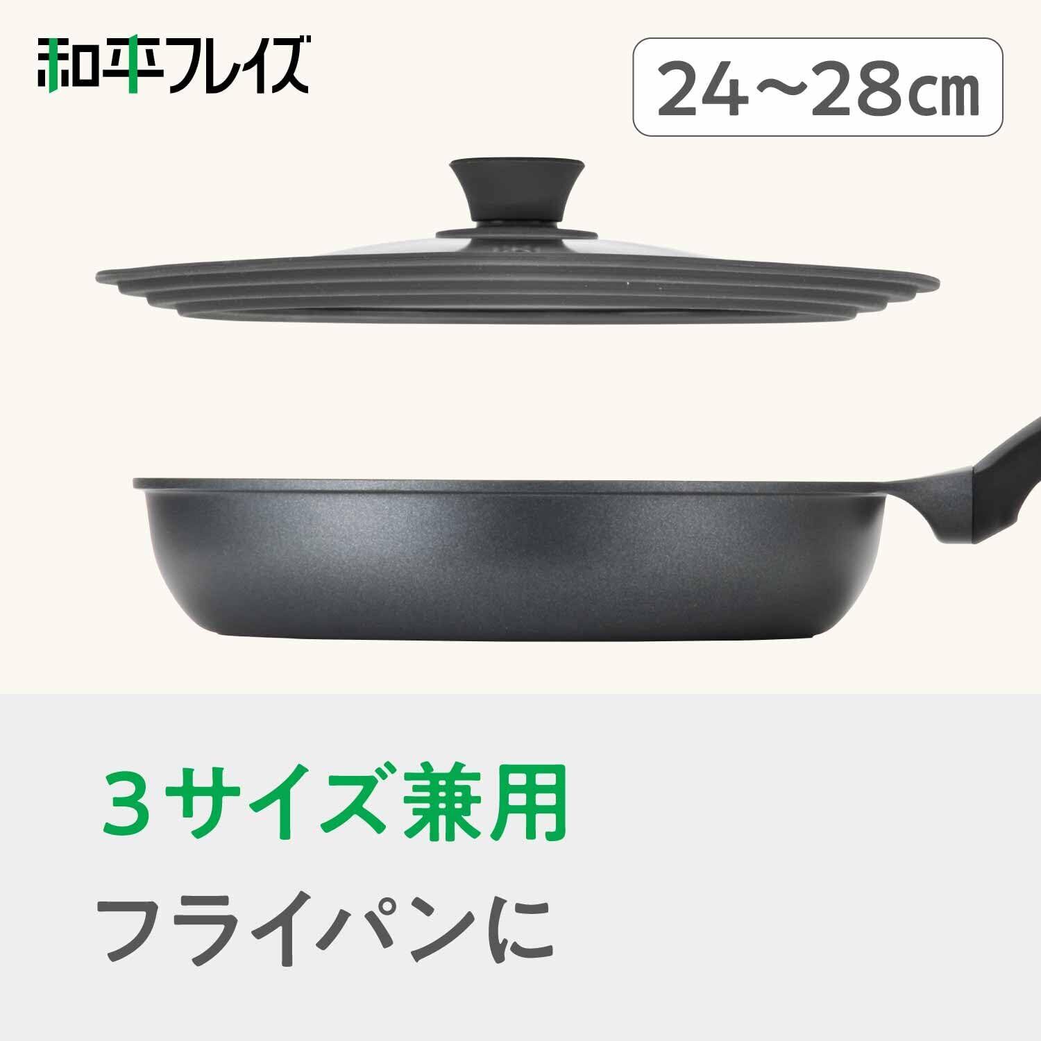 和平フレイズ シリコーンリッド ガラス蓋 24cm 26cm 28cm 兼用 フライパンカバー 鍋蓋 クックデリー AME-7336