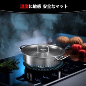 【温度変化により色が変わる】IHコンロ用の焼け付き防止マットです。本品は温度変化により表面模様が現れる便利な機能が付いています。温度が上がると柄の色が青緑から水色に変化するので、綺麗です。熱さの目印にもなり便利ですね。40度以上か40度以下でマットの色が変わるので鍋ややかんの中の温度もまだ熱いんだなぁと一つの判断になります。