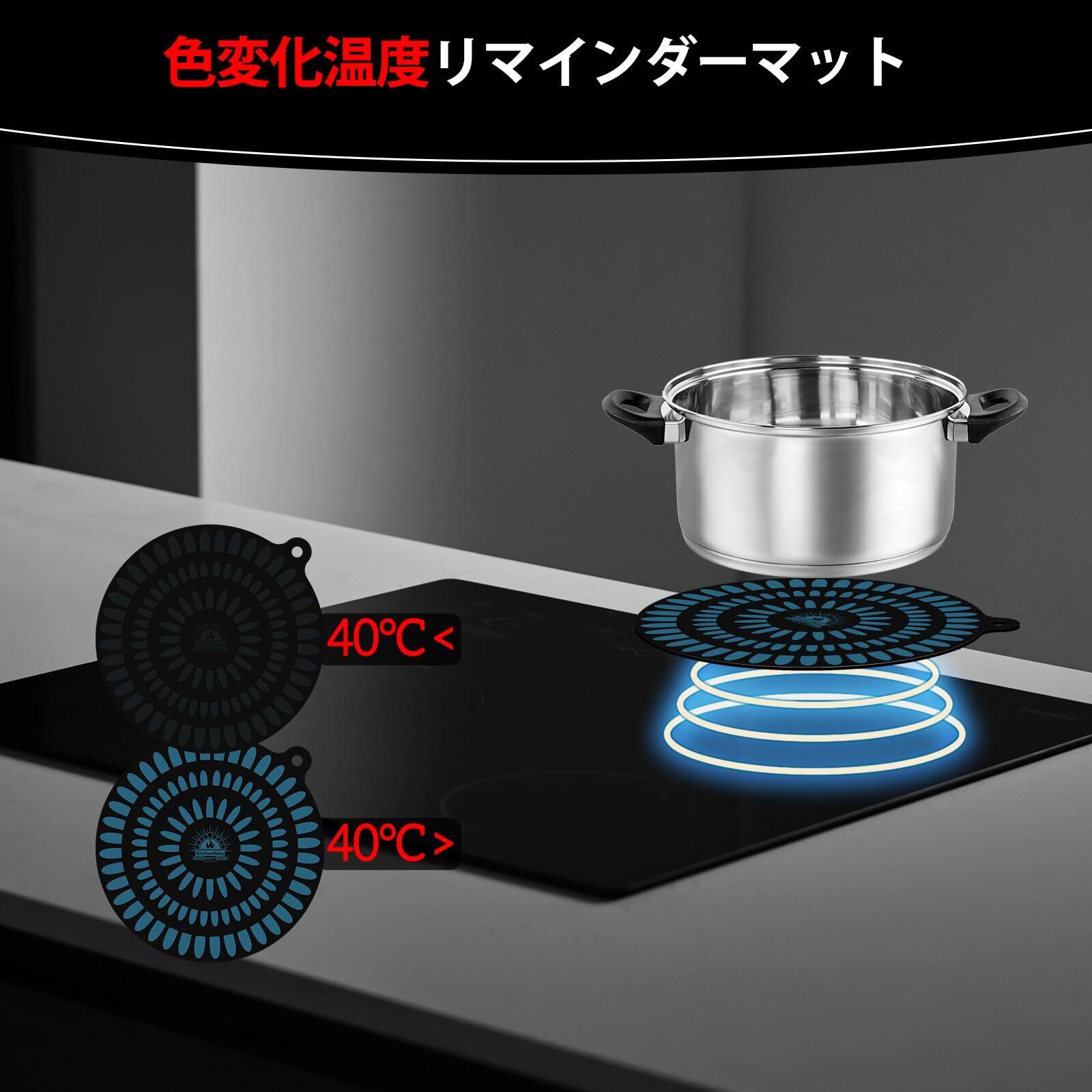 【数量限定】ihマット ihクッキングヒーターマット 温度変化により色が変わる 黒系 グリーンtoブルー 柄3 24cm 2枚 滑り止め 夏っぽい 傷防止 シリコンマット 断熱パッド