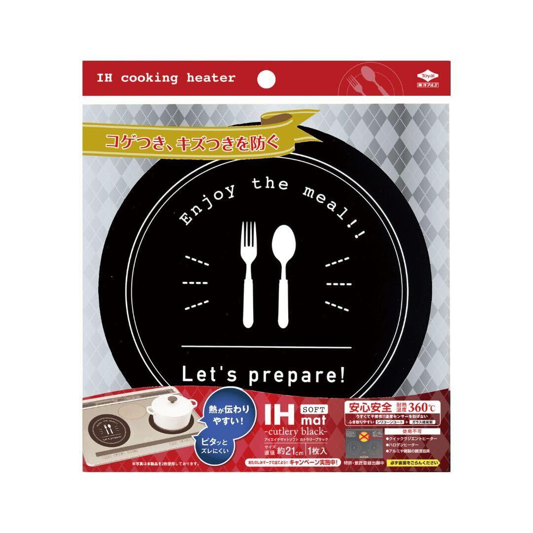 東洋アルミ IHマット 直径約21cm 1枚入 カトラリーブラック 薄くズレにくいsoftタイプ コゲ、キズ防止 水洗い IHクッキングヒーターカバー S3162