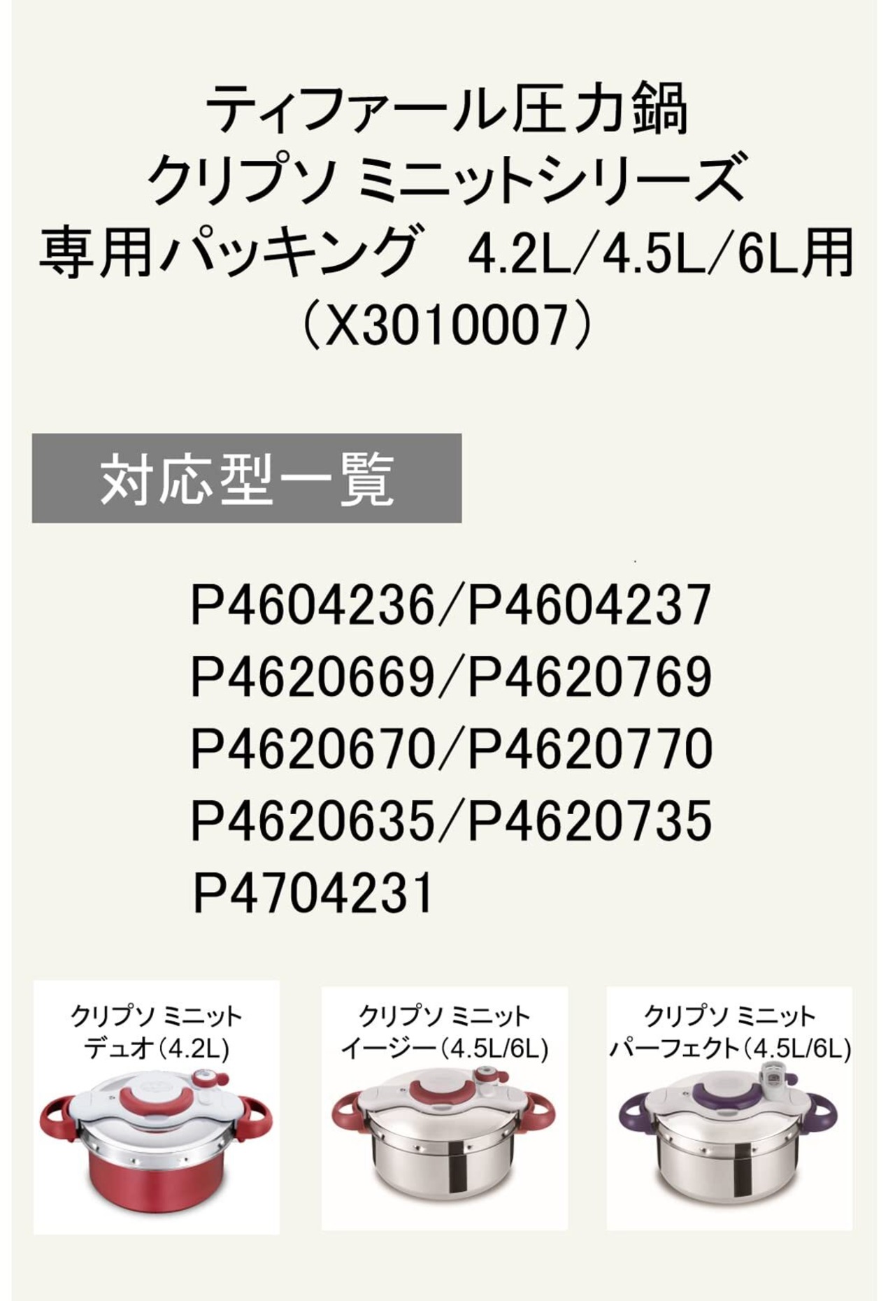 【特価セール】ティファール 圧力なべ クリプソミニット専用パッキング 4.2L/4.5L/6L用 X3010007 ブラック