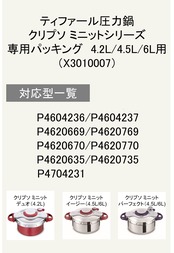 ティファール 圧力なべ クリプソミニット専用パッキング 4.2L/4.5L/6L用 X3010007 ブラック