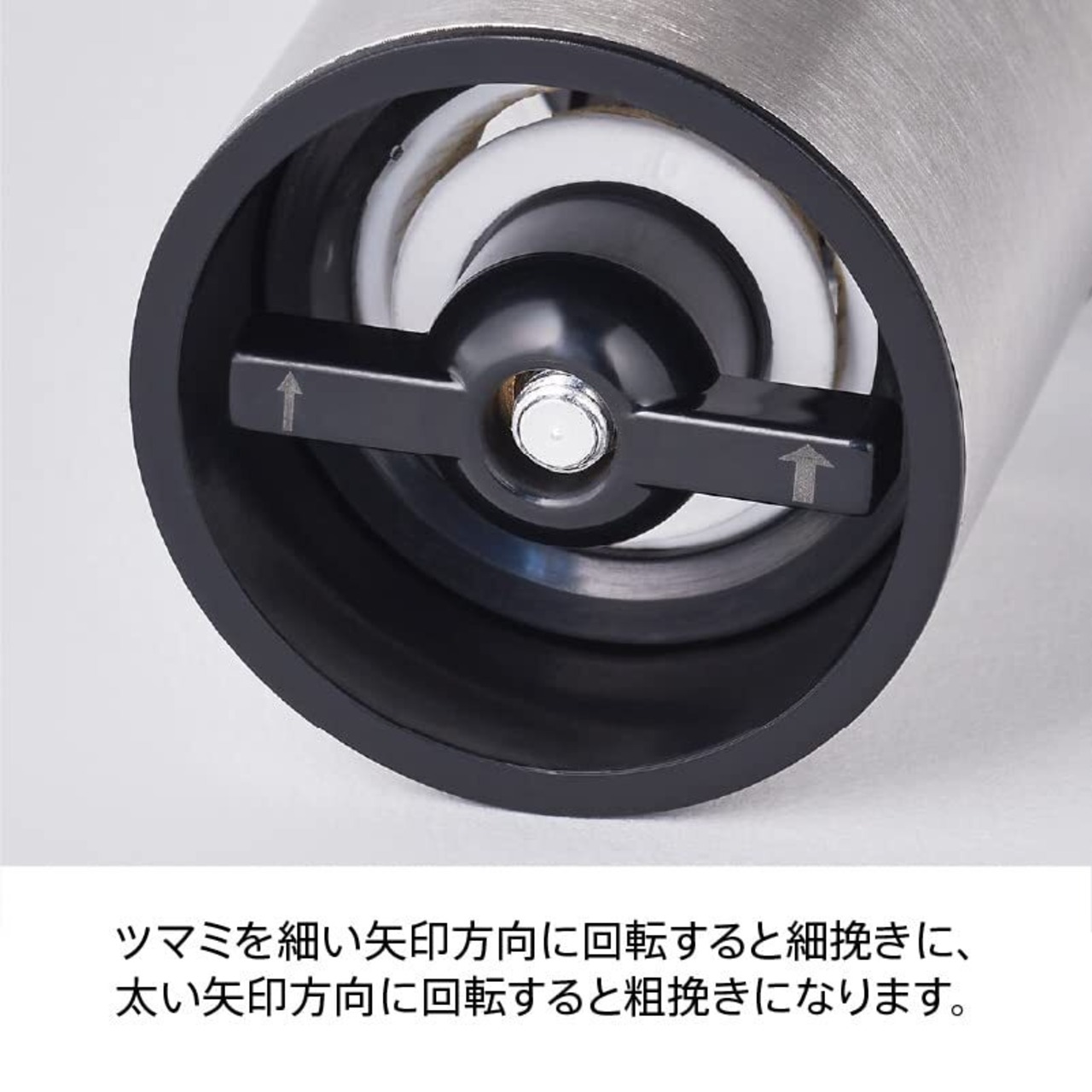 テーブルコーディネートや料理の味わいにプラスもできる、コンパクトサイズの電動ミルハンディサイズでコンパクトなため、スペースをとらない料理の最後の仕上げにも、食事中の一足しにも便利なアイテム手にフィットする使いやすいデザイン。ステンレスの質感は清潔感ある印象を与えてくれるグラインダー部に残る細かな胡椒や塩がテーブルなどに散って汚れないよう、専用スタンドが付いている錆の心配がなく、岩塩にも使用できる丈夫なセラミック製の刃を採用。摩擦熱が生じにくいため、熱で飛びやすい胡椒の香りを保つ粗いものから細かいものまで、好みに合わせた挽き方を自在に調節することができる
