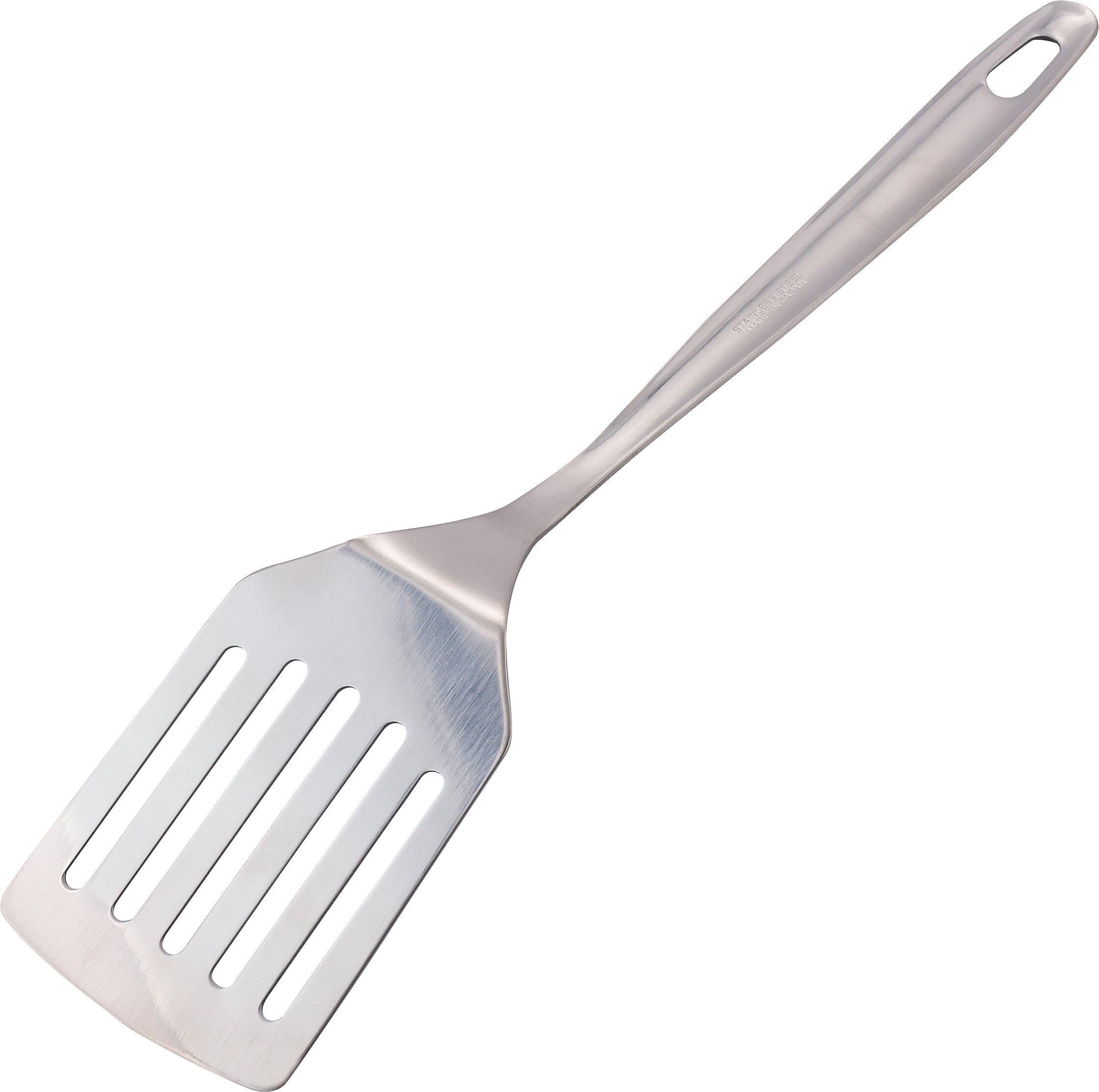 質と使いやすさにこだわった厨房用調理用具「味道(あじどう)」シリーズ。プロの方のご利用はもちろん、一般のご家庭でも活躍する逸品です。錆びにくく丈夫なステンレス製のターナーです。