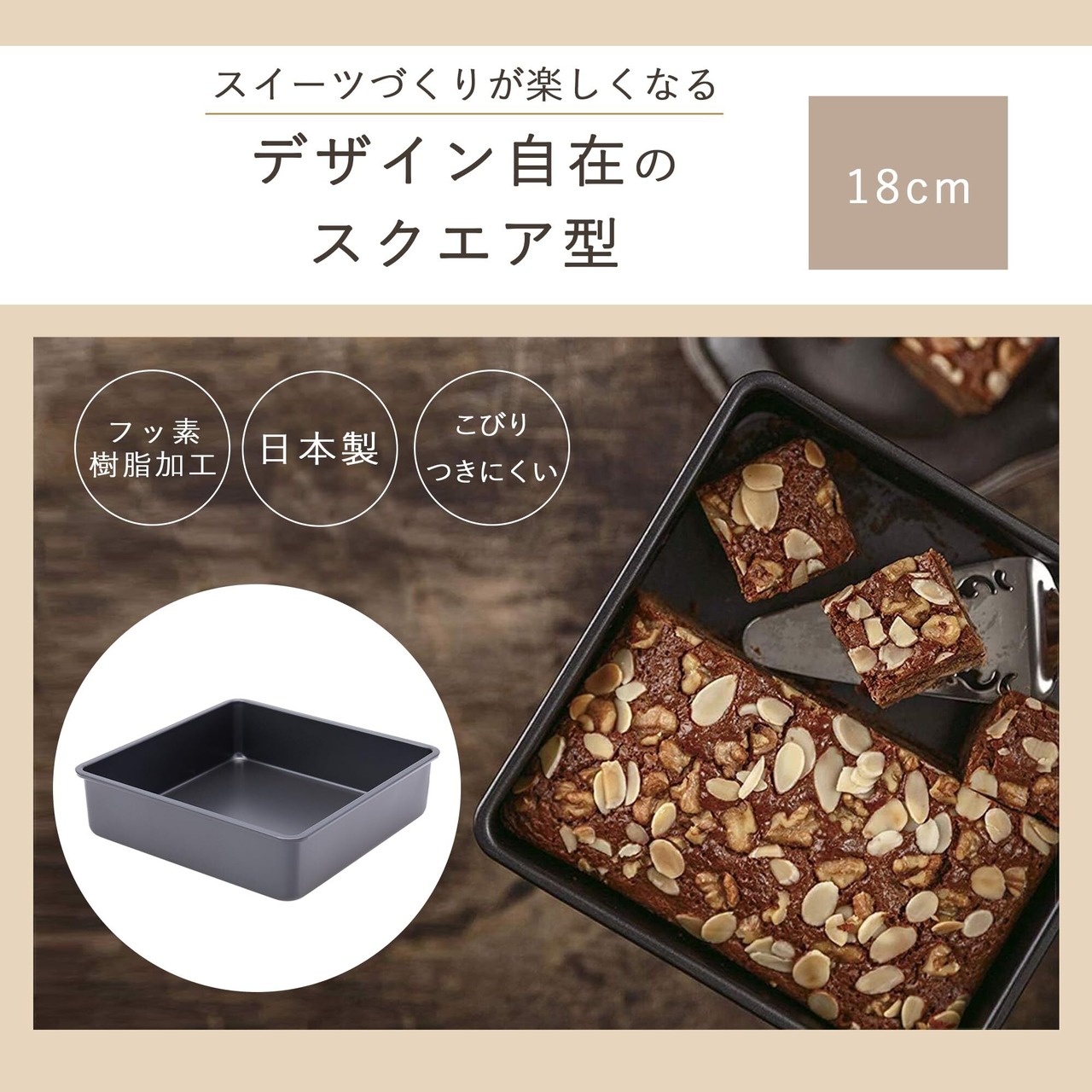貝印 KAI ケーキ型 Kai House Select スクエア 18㎝ お手入れ簡単 DL6121