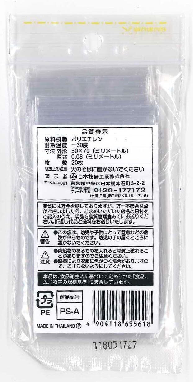 プチ! チャック付き 小物袋 透明 (文字が記入できる・厚さ0.08mm) 切手やクリップが入るサイズ PS-A 20枚入り Aサイズ:横50×縦70mm