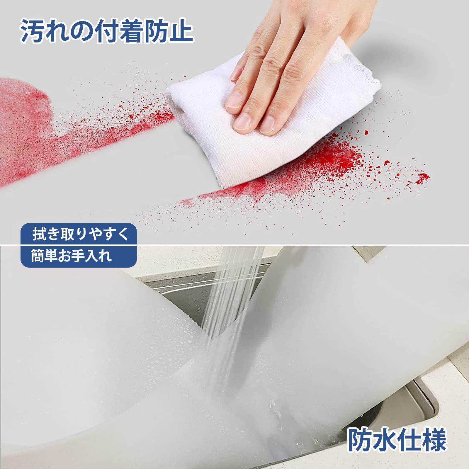 【滑り止め&簡単お手入れ】背面にはユニークなデザインの粒子とシリコンマットの全体の厚さで、滑らず、移動しないように固定できます。このシリコンカウンターマットは摩擦を増やし、まな板、家電、カトラリーなどを置いてもずれません。調理中も調理器具がすべりにくく更に作業効率がアップ!このキッチンカウンターマットは滑らかな表面と防水素材で作られており、キッチンのゴミ、汚れ、油汚れ、接着剤を簡単にすばやく取り除いて掃除することができます。直接雑巾で拭いたり、石鹸水で洗うだけです。再利用可能で環境に配慮しています。