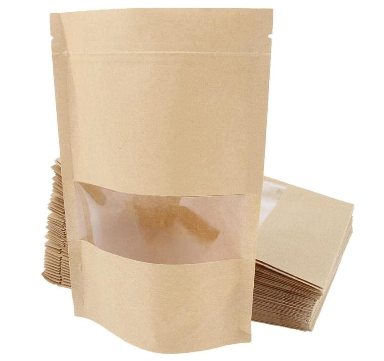 fogman 窓付き ジップ袋 紙袋 30枚セット クラフト紙 自立 チャック ジッパー 包装 (12 x 20cm)