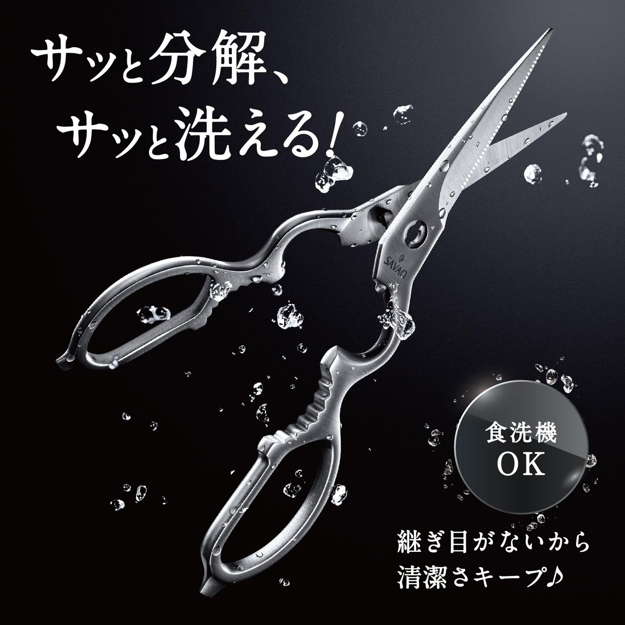 SAVAQ正規品 手放せない理由がある 進化系キッチンバサミ 分解して洗えるオールステンレス 食洗機対応