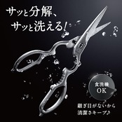 【至極の断ち心地】 先細刃とギザ刃加工で狙ったポイントを的確にカットでき、食材の断面も綺麗な切り口に。 また、硬度の高いステンレス素材を使用しているので耐久性に優れ、硬いお肉の筋や骨、乾物系も簡単にカットできます。