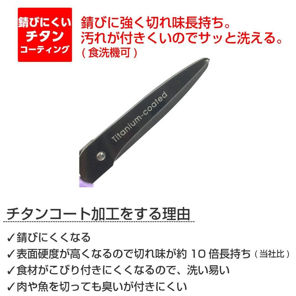 キャップ付きで軽量なので携帯に便利。抗菌加工、チタンコーティング、食洗機OKなので清潔に保てます。切味抜群で、ミニキッチンバサミとしても使えます。