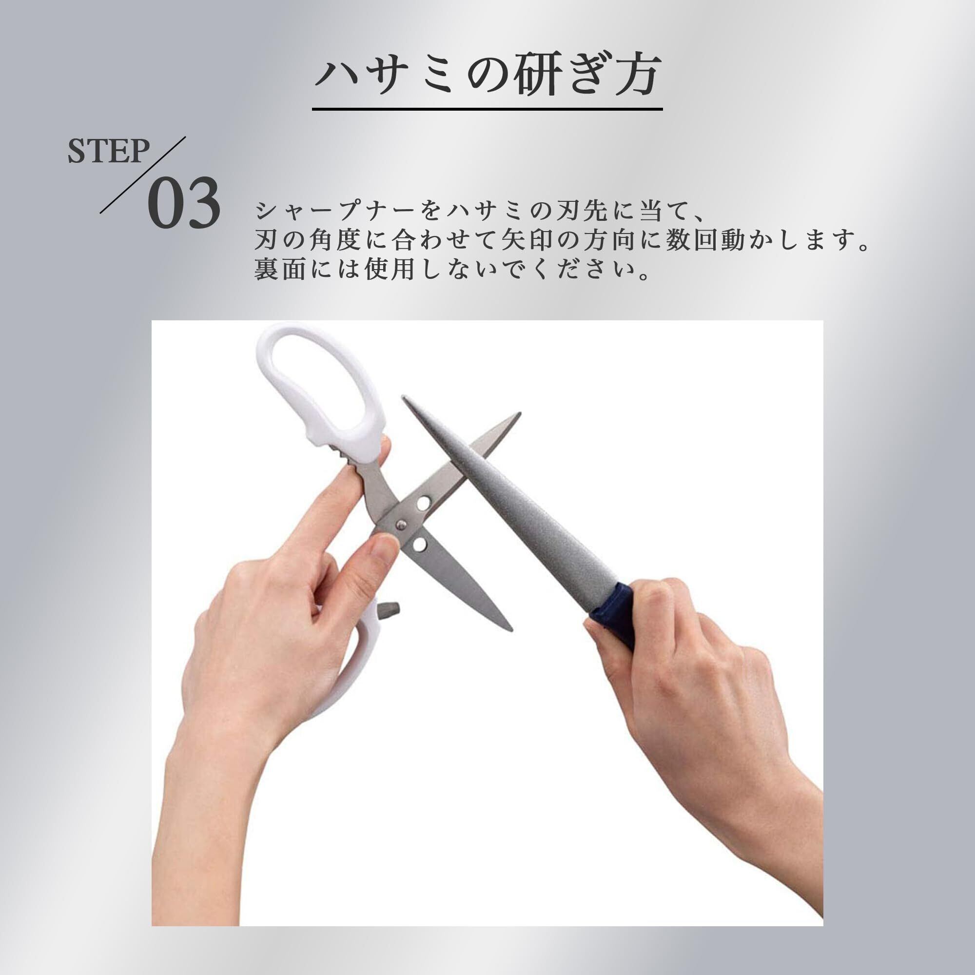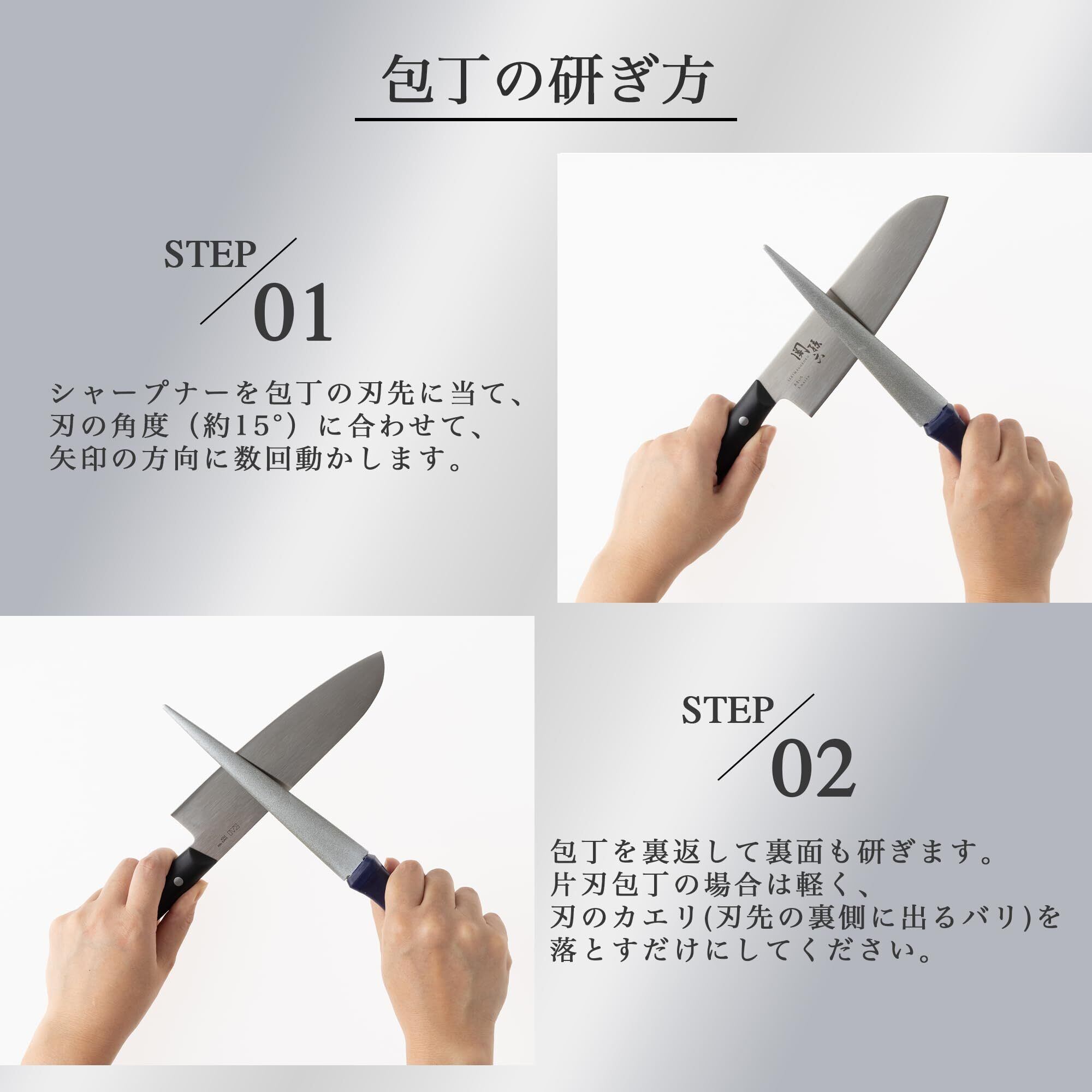 数回研ぐだけで切れ味が蘇る。両刃包丁・片刃包丁・ハサミにも使えるスティックタイプのシャープナーです。