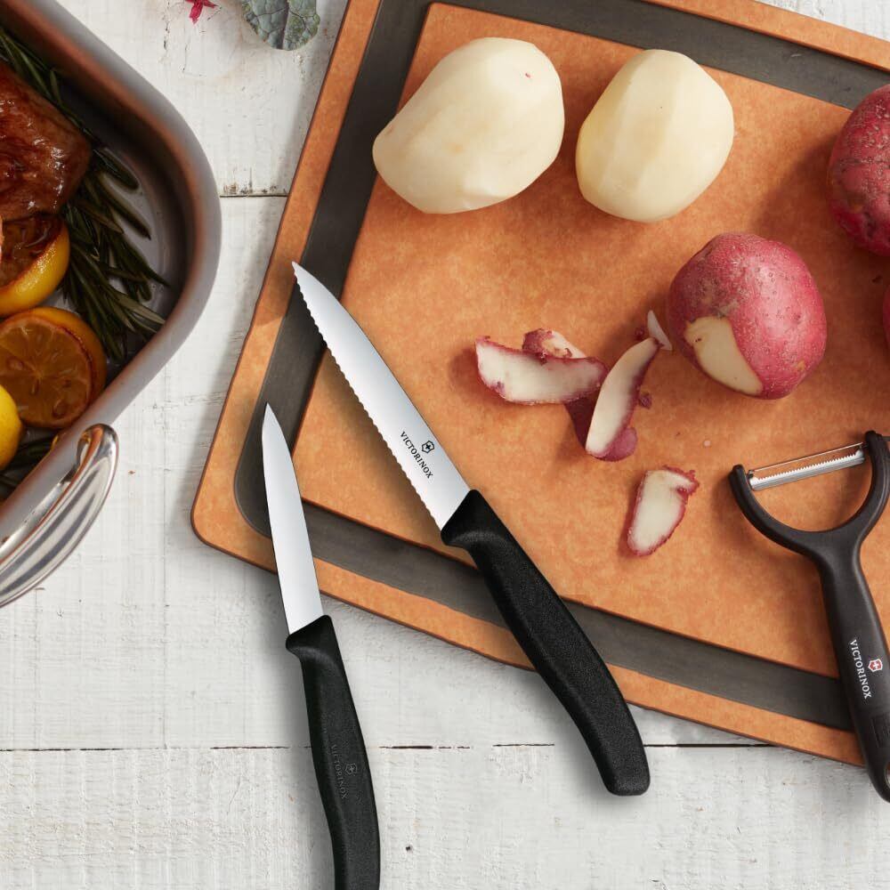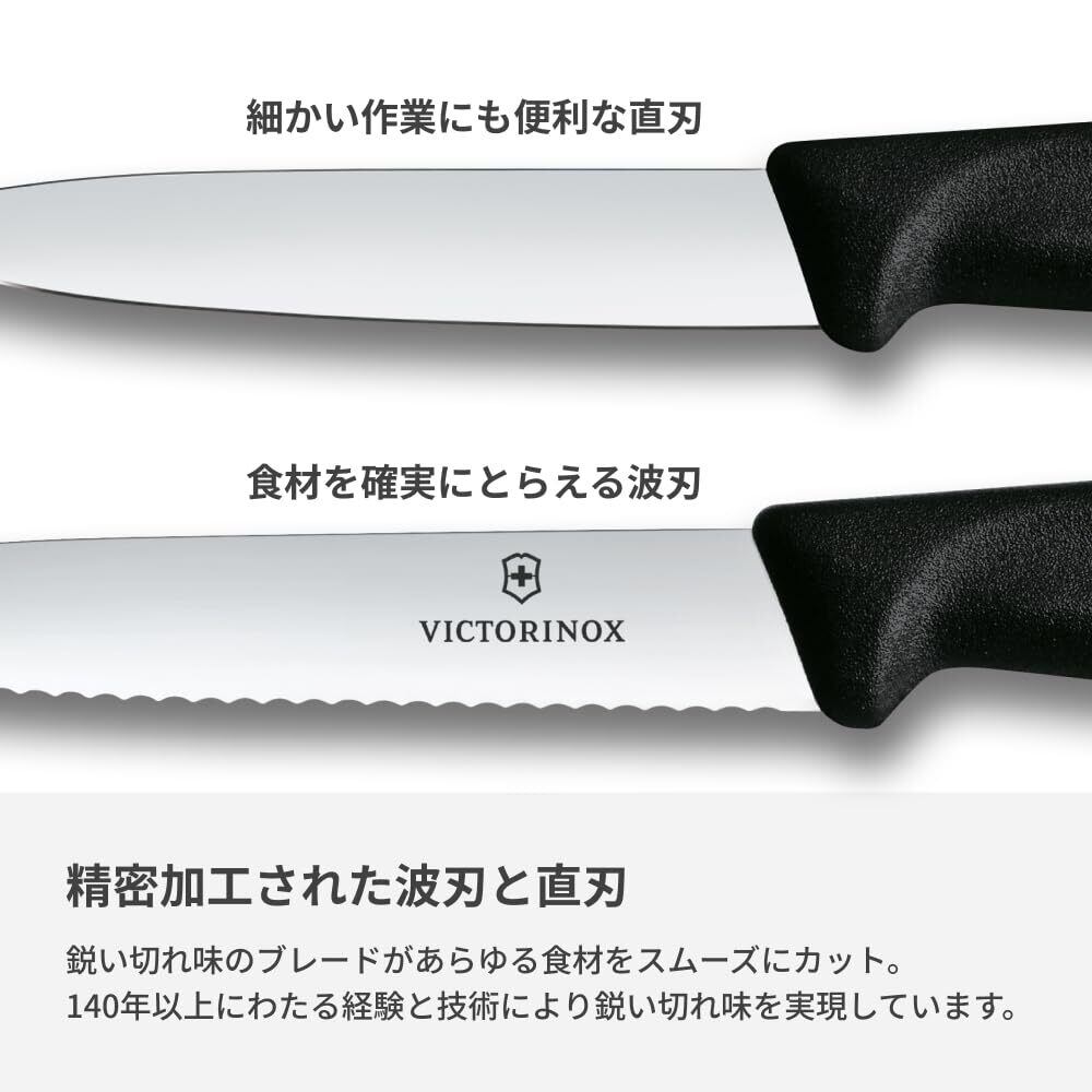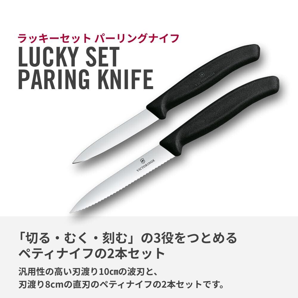 VICTORINOX(ビクトリノックス) ペティナイフ2本セット 食洗機対応 10cmブレード 波刃 直刃 ブラック スイスクラシック ラッキーセット 6.7113.21-X1
