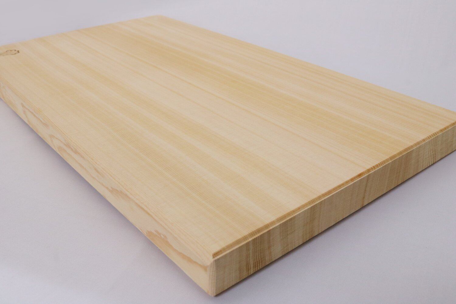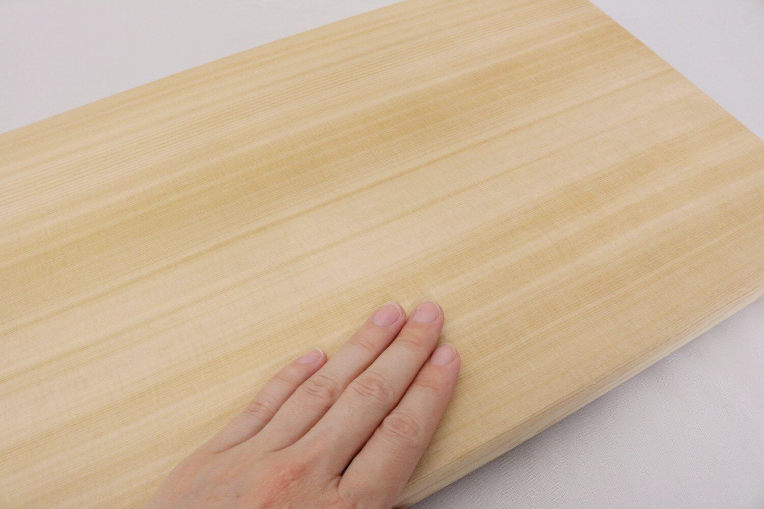 高級天然木・スプルスを使用、日本の檜と柳の中間の特性を持ち、ソリが少なく、魚・野菜料理のどちらにも便利なまな板