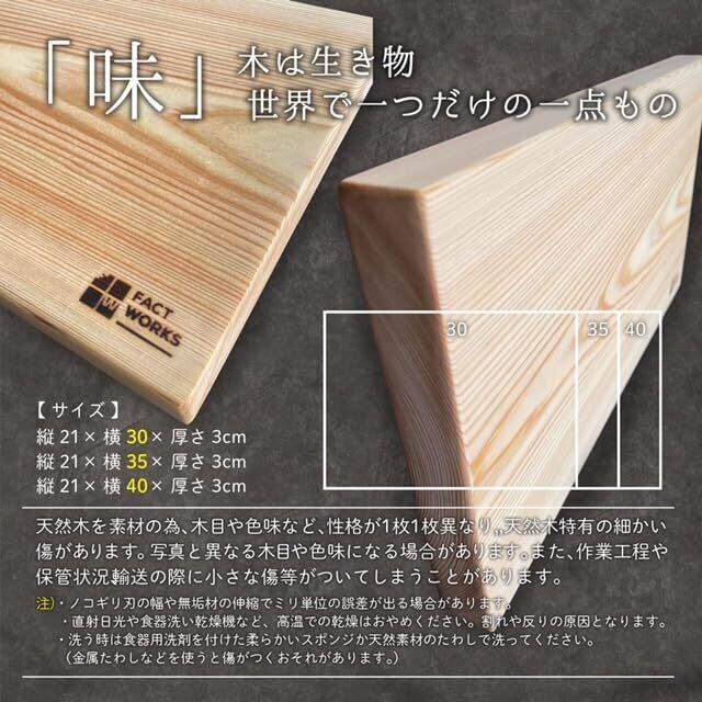 【人気商品】まな板 桧 21cm×40cm×厚3cm 高級国産材 一枚板 檜 ひのき (40cm)