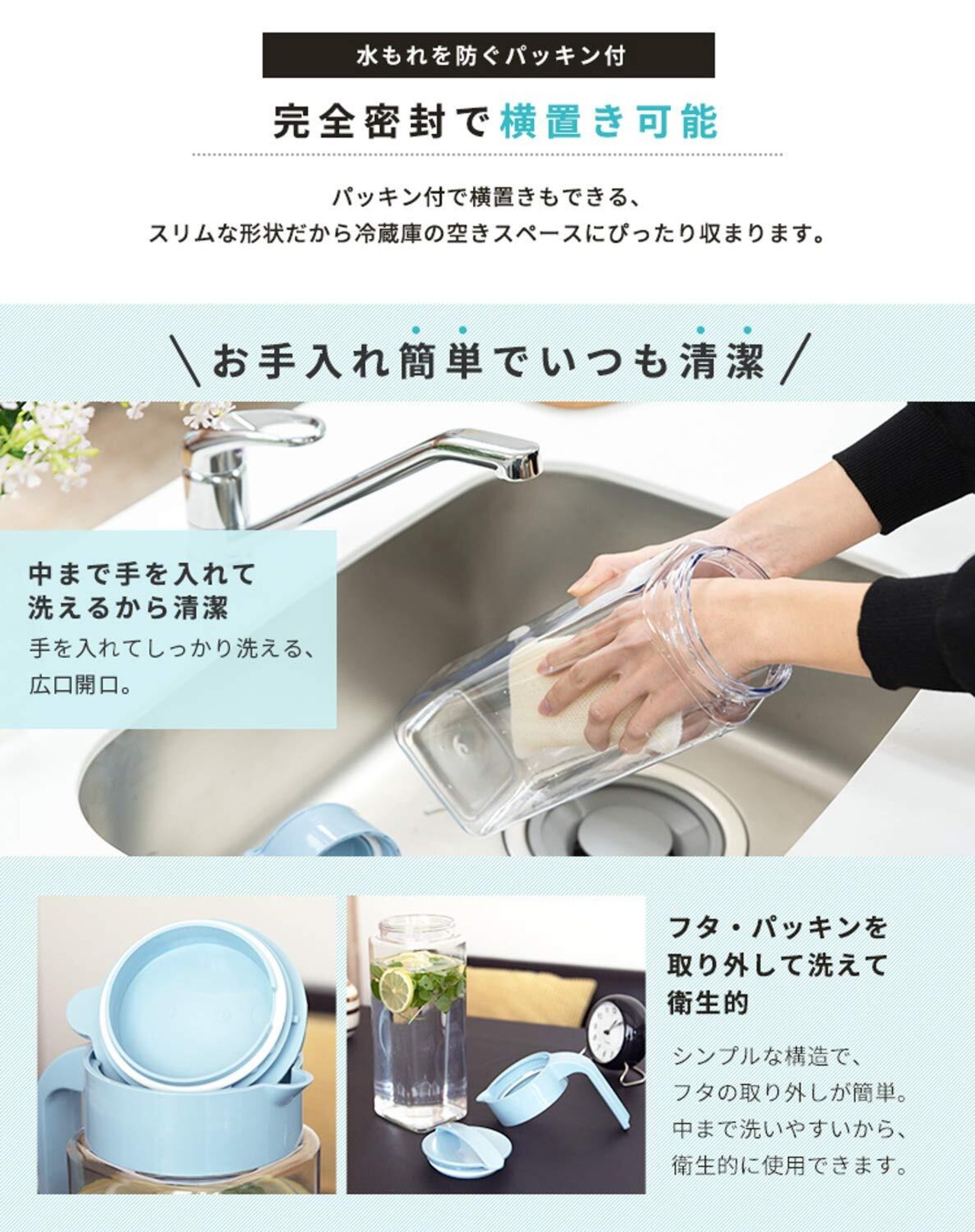 完全密封で横置き可能な冷水筒「ドリンク・ビオ」2.1L