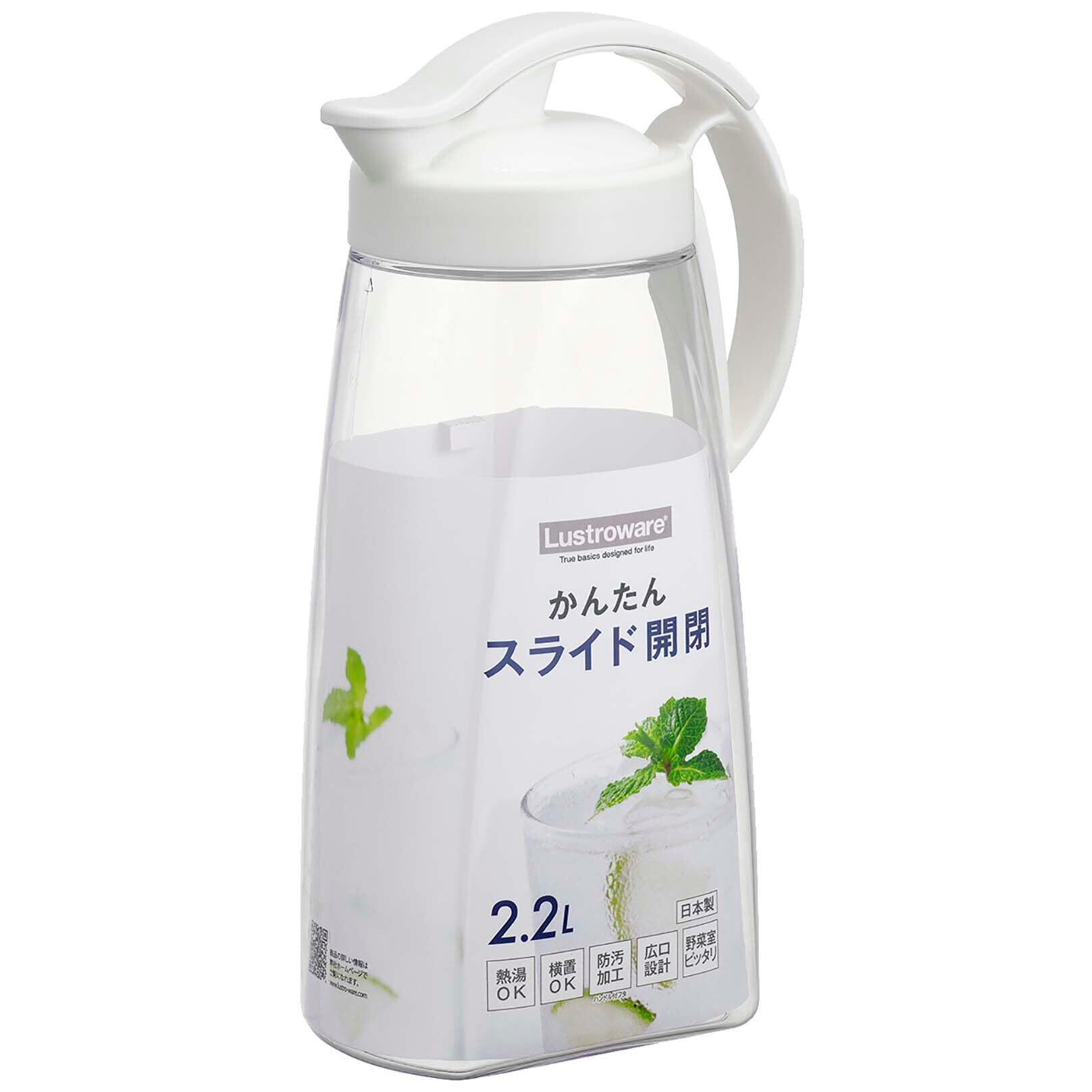 岩崎工業 ラストロウェア タテヨコ・スライドピッチャー 2.2L 麦茶ボトル 熱湯対応 横置き スライド 広口 洗いやすい K-1264