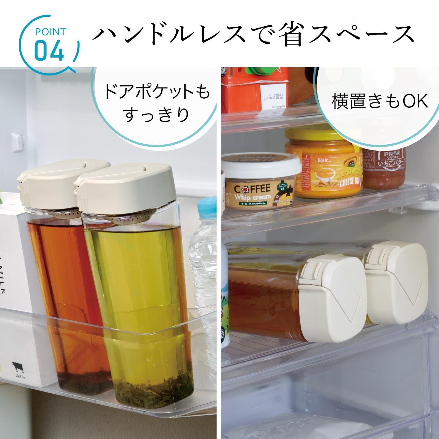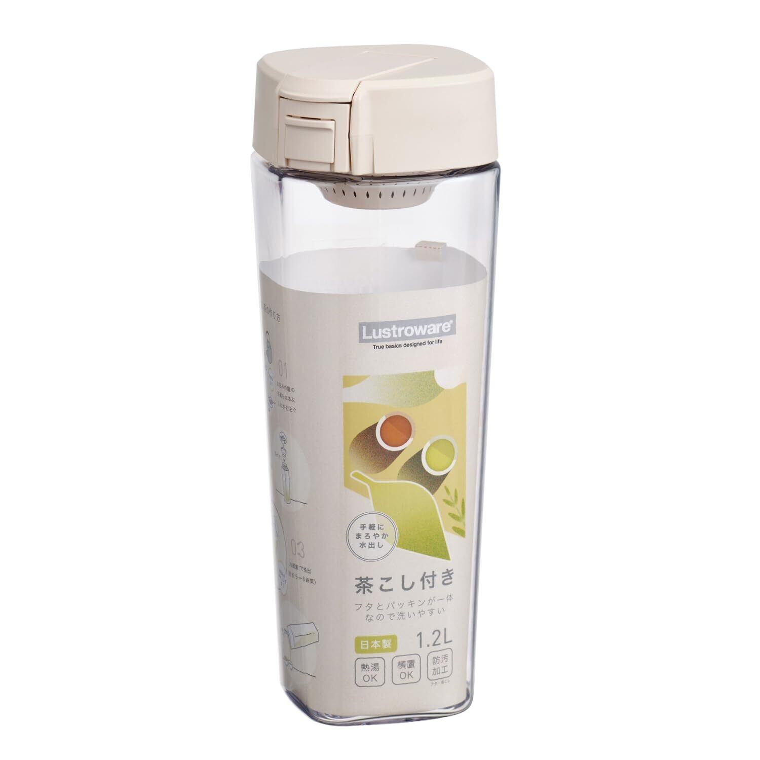 ハンドルがない省スペースコンパクト設計の冷水筒1.2L 茶こし付。